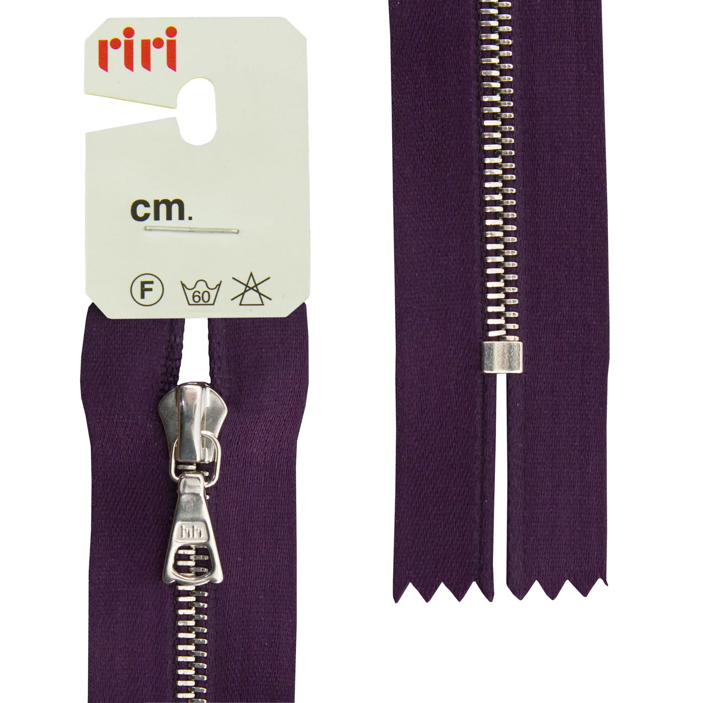 Молния RiRi атласная, металл, неразъём, 4 мм 16 см, подвеска Flach, цепь Ni, цвет 2510, т.фиолетовый