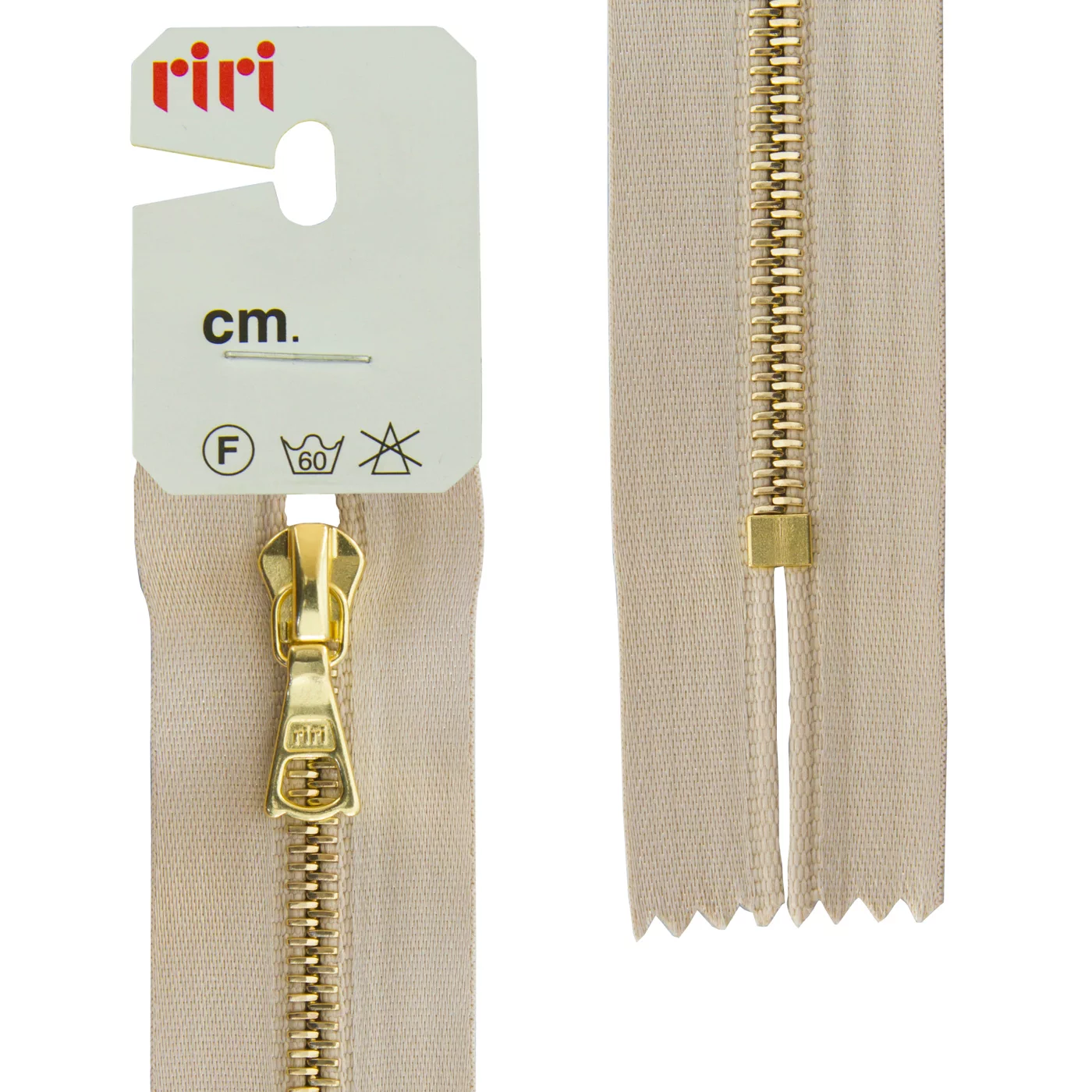 Звено и бегунок имеют цвет золотистого покрытия, нанесённого гальваническим способом. Бегунок RiRi представляет собой монотело, сопротивление разрыву замка и подвески на замке в 2 раза больше, чем на аналогичных изделиях других производителей!