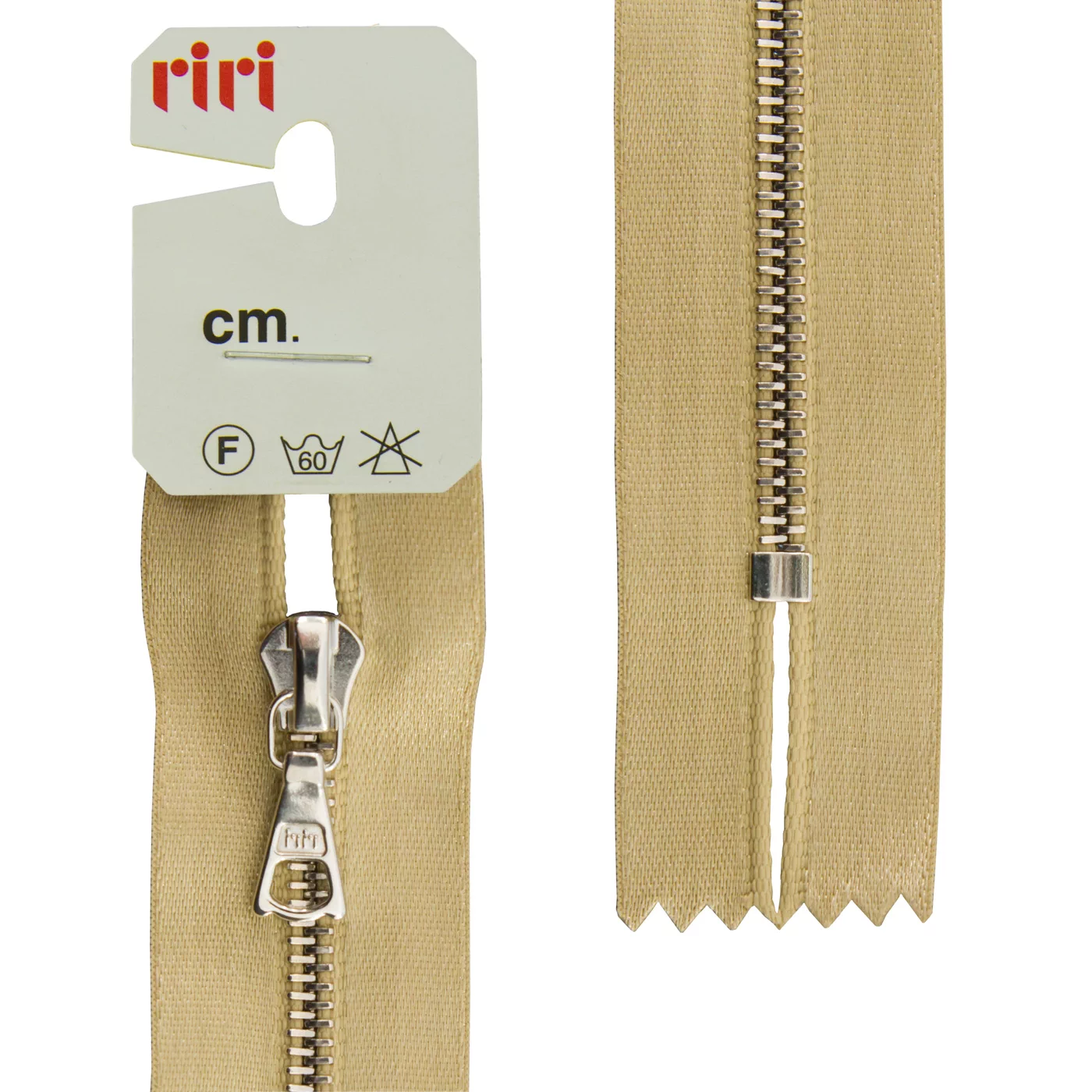 Молния RiRi атласная, металл, неразъём, 4мм 18 см, подвеска Flach, цепь Ni, цвет 2213, золотисто-беж