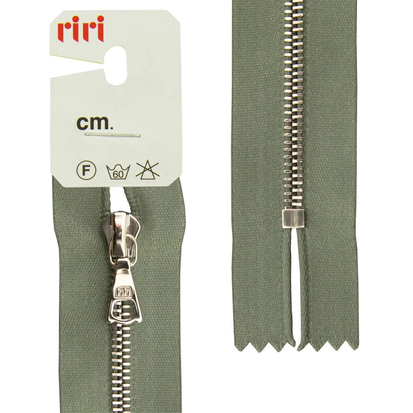Молния RiRi атласная, металл, неразъём, 4 мм 18 см, подвеска Flach, цепь Ni, цвет 5884, оливковый
