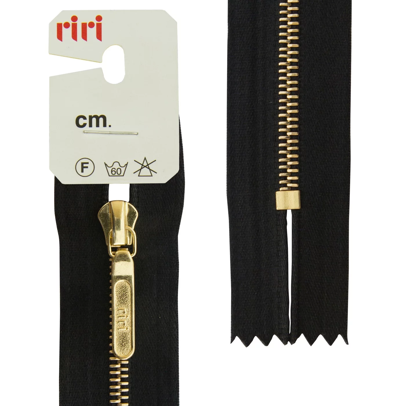 Звено и бегунок имеют цвет золотистого покрытия, нанесённого гальваническим способом. Бегунок riri представляет собой монотело, сопротивление разрыву замка и подвески на замке в 2 раза больше, чем на аналогичных изделиях других производителей!