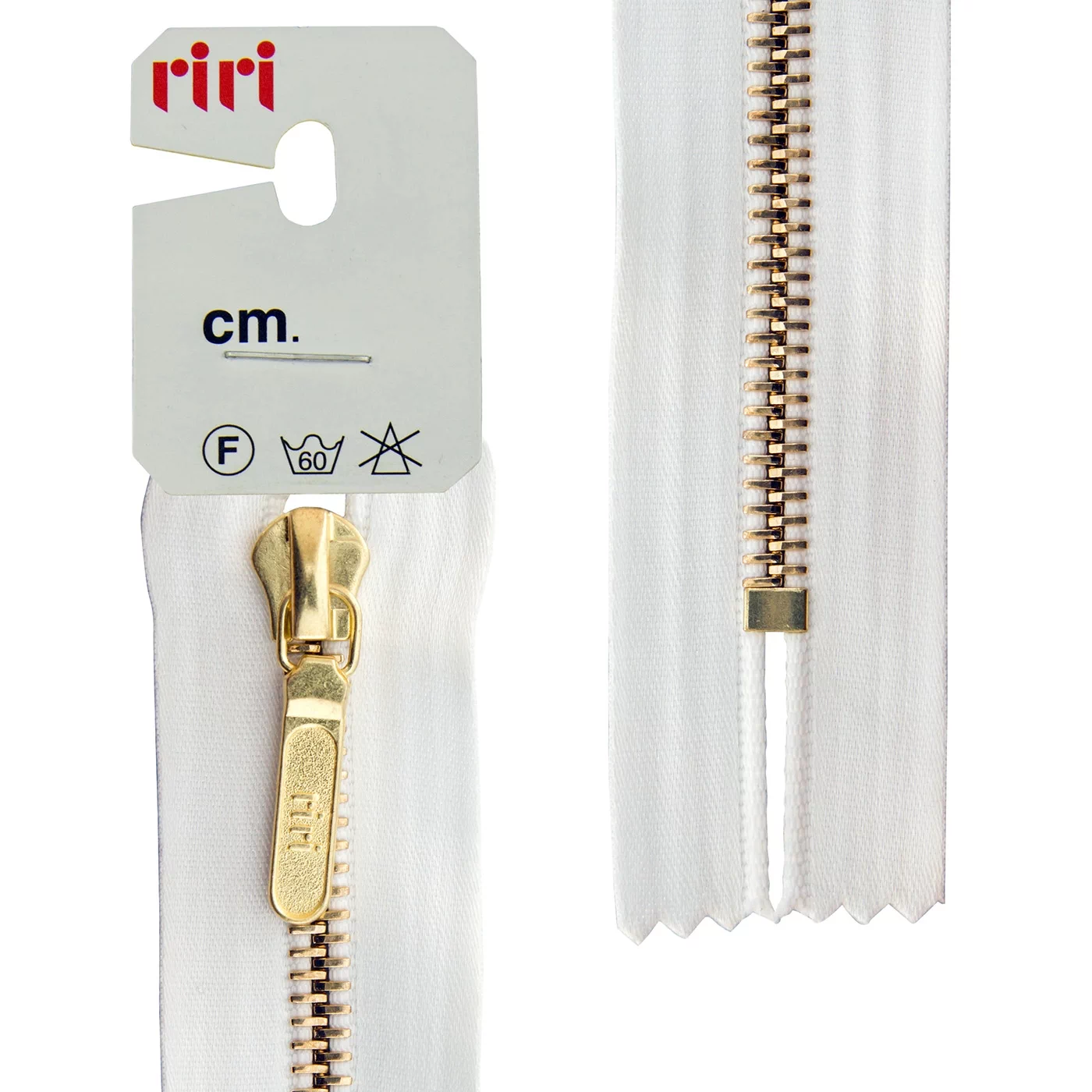 Звено и бегунок имеют цвет золотистого покрытия, нанесённого гальваническим способом. Бегунок riri представляет собой монотело, сопротивление разрыву замка и подвески на замке в 2 раза больше, чем на аналогичных изделиях других производителей!