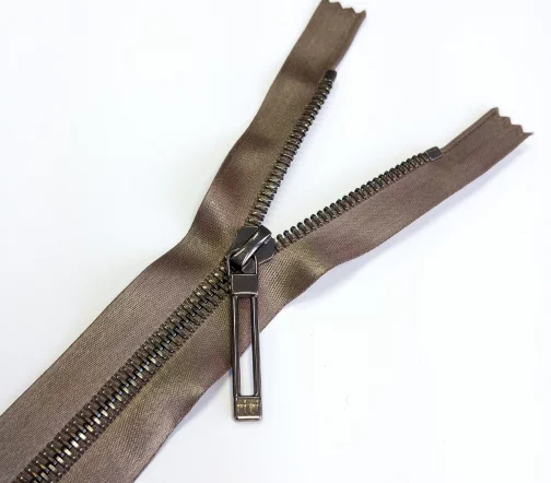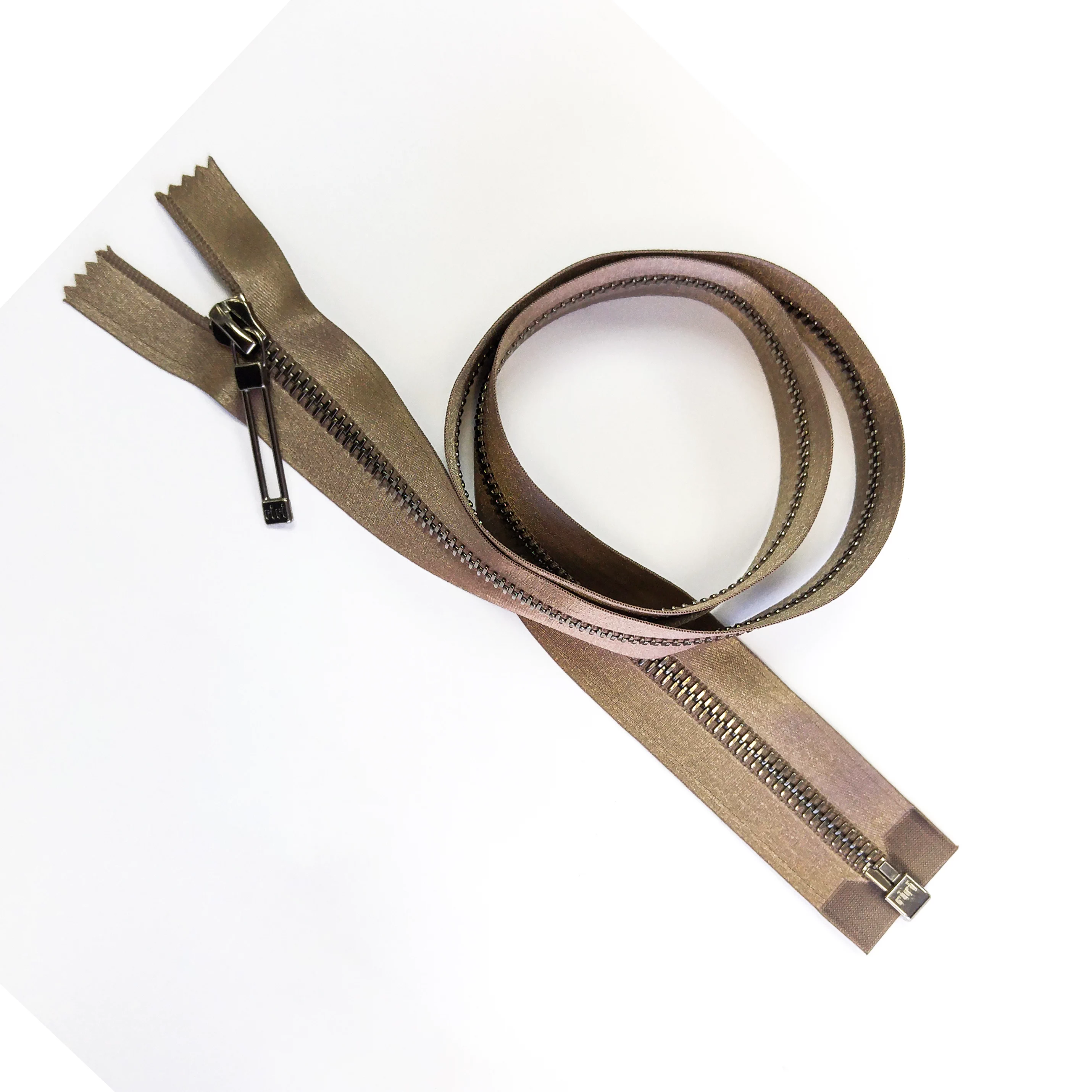 Молния RiRi атласная, металл, разъем, 1замок 6мм 70см, подв.Stab, цепь BR, цвет 9216, бежево-коричн.