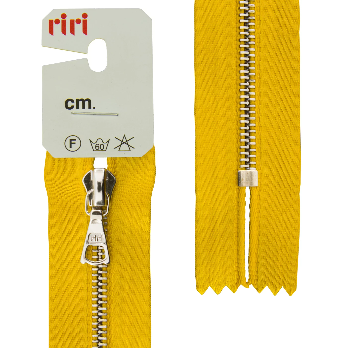 Молния RiRi атласная, металл, неразъёмная, 4 мм 16 см, подвеска Flach, цепь Ni, цвет 5339, горчичный