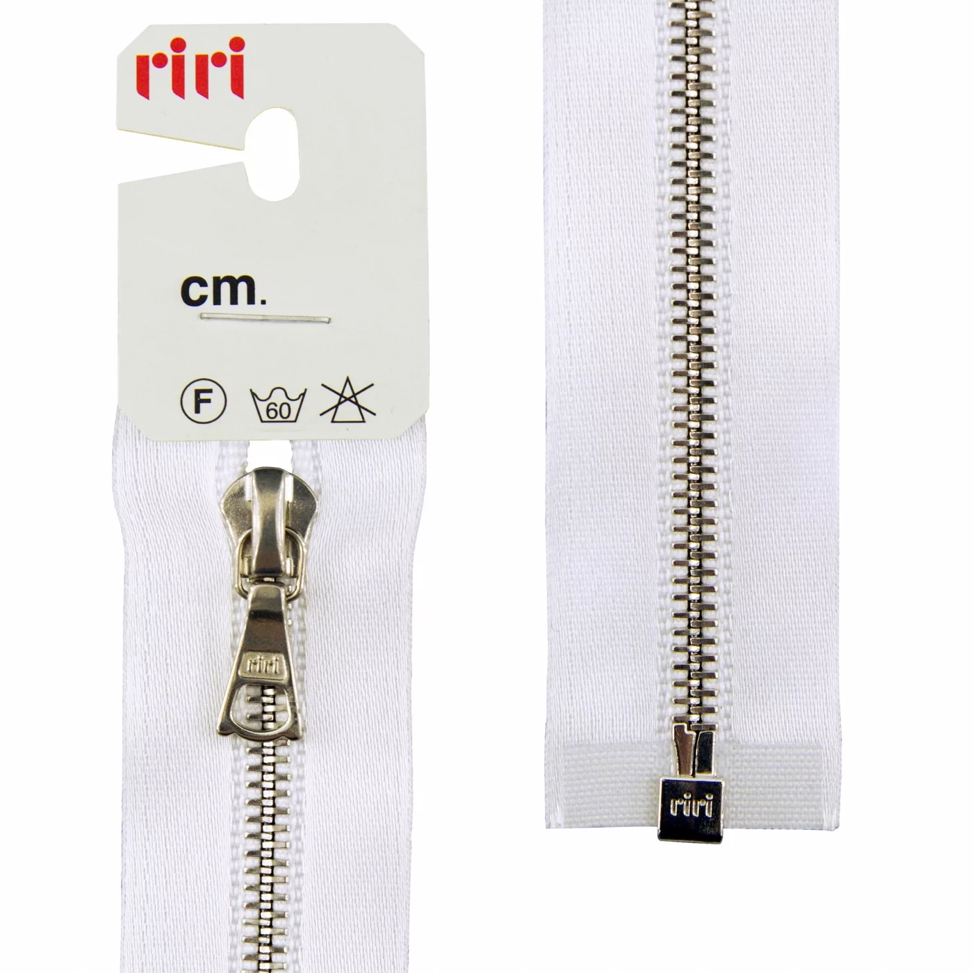 Молния RiRi атласная, металл, разъем, 1 замок 4 мм 60 см, подвеска Flach, цепь Ni, цвет 2101, белый