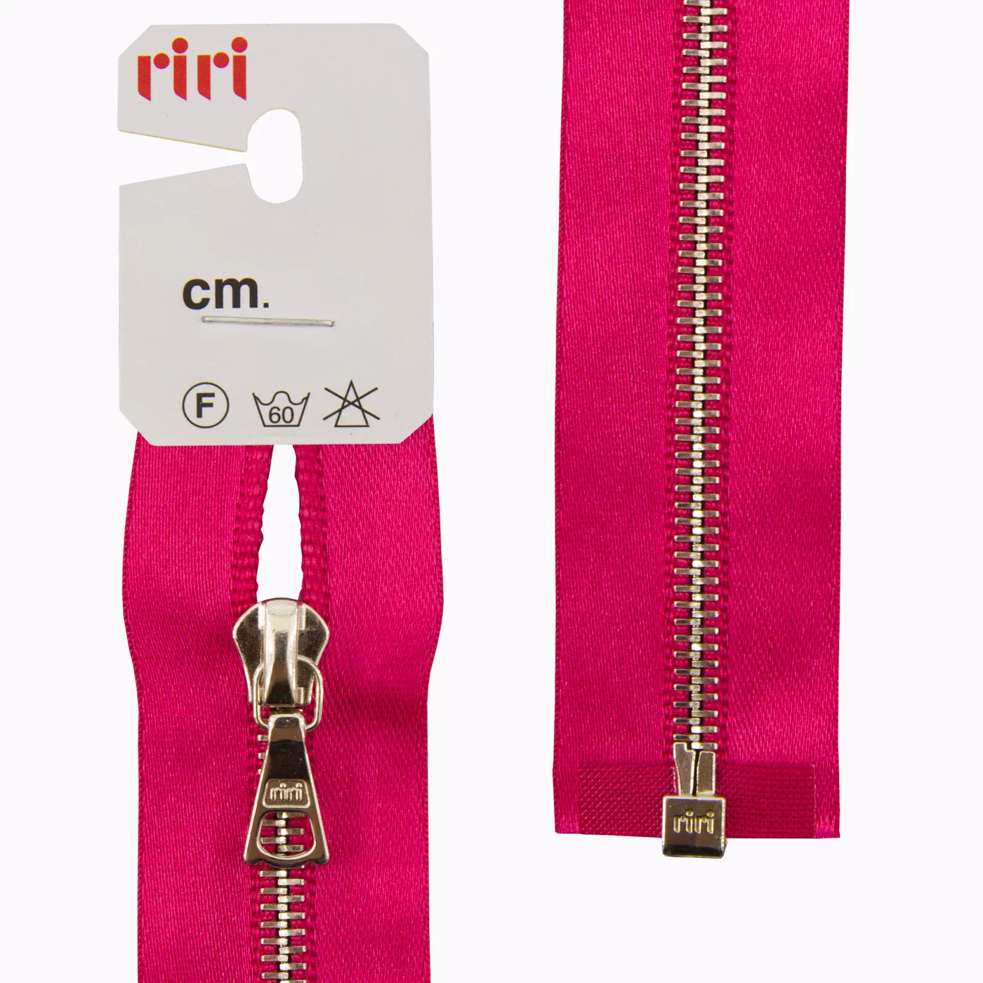 Молния RiRi атласная, металл, разъём, 1замок 4мм 60см, подвеска Flach, цепь Ni, цвет 9407, малиновый