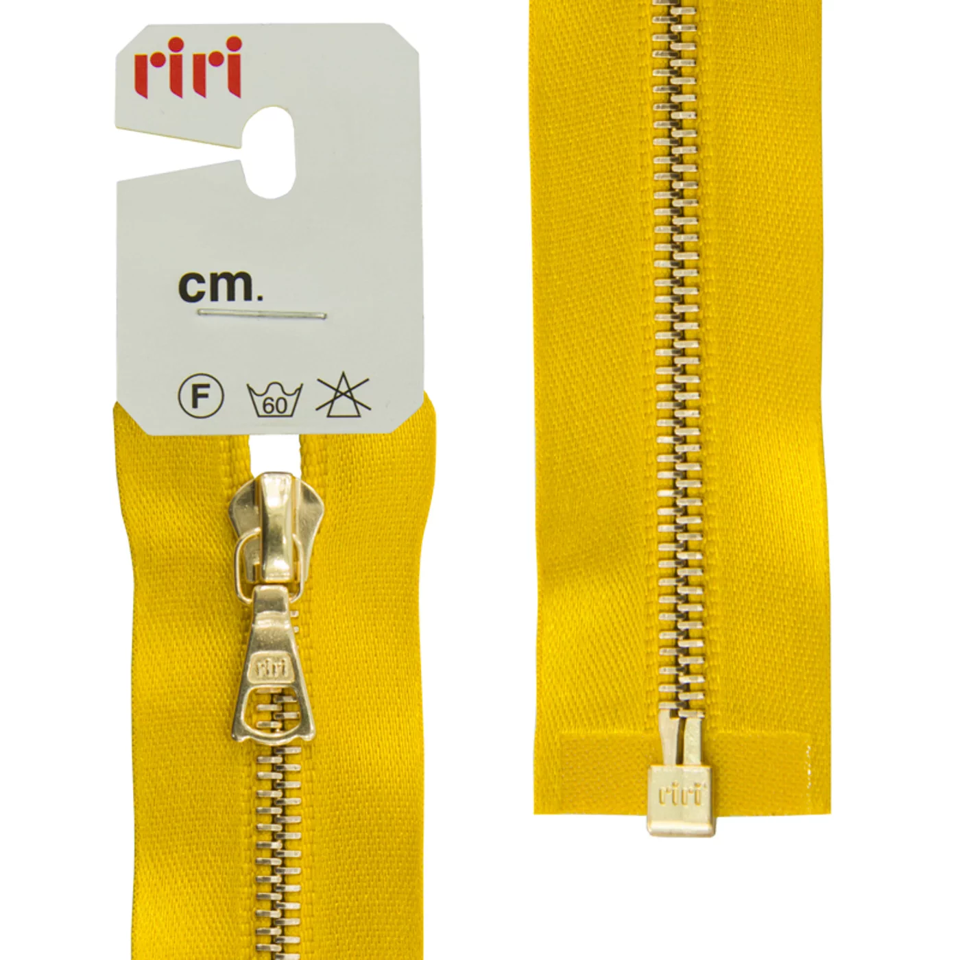 Молния RiRi атласная, металл, разъём, 1замок 4мм 65см, подвеска Flach, цепь GO, цвет 5339, горчичный