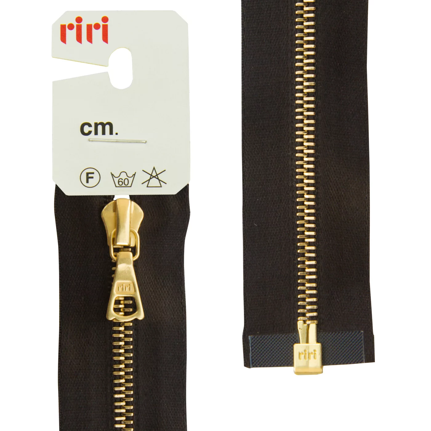 Звено и бегунок имеют цвет золотистого покрытия, нанесённого гальваническим способом. Бегунок RiRi представляет собой монотело, сопротивление разрыву замка и подвески на замке в 2 раза больше, чем на аналогичных изделиях других производителей!