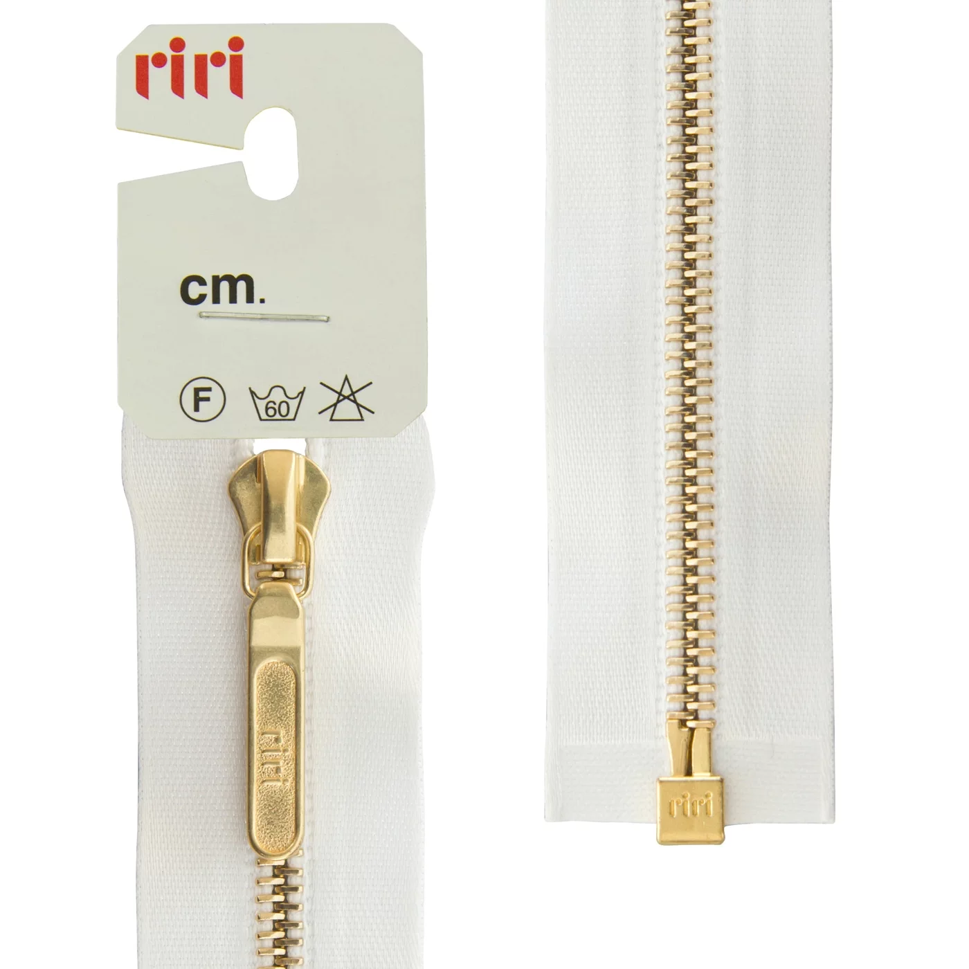 Звено и бегунок имеют цвет золотистого покрытия, нанесённого гальваническим способом. Бегунок riri представляет собой монотело, сопротивление разрыву замка и подвески на замке в 2 раза больше, чем на аналогичных изделиях других производителей!