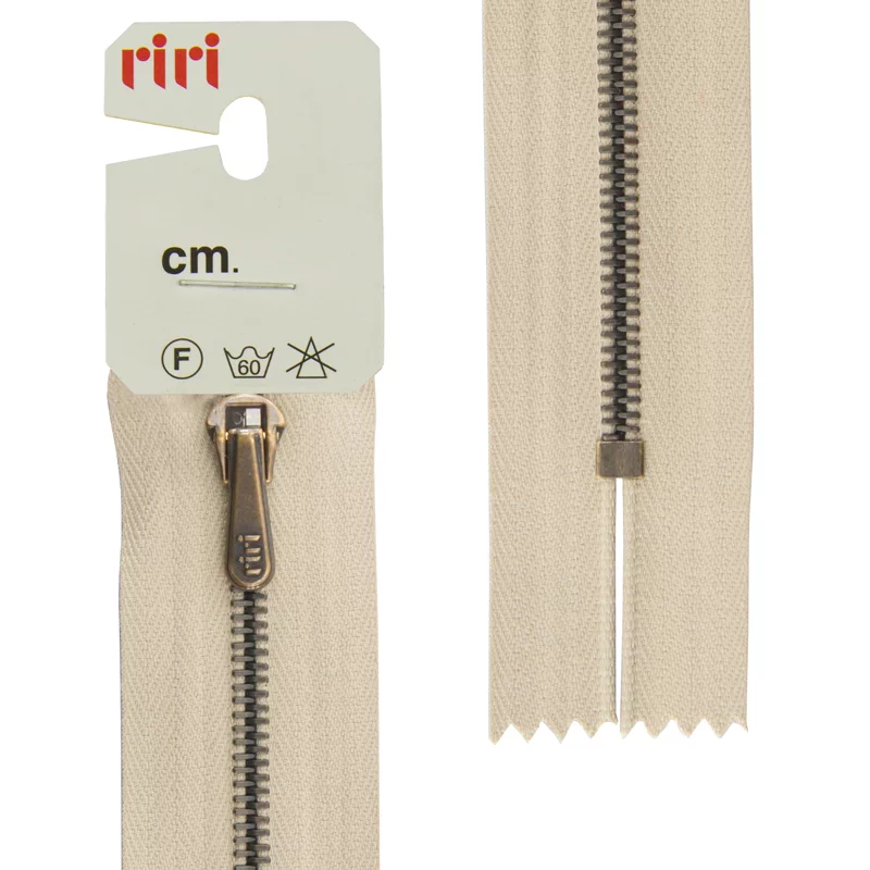 Молния Riri брючная, металл антик медь, неразъёмная, 4мм 18см, цвет 2230, бежевый холодный