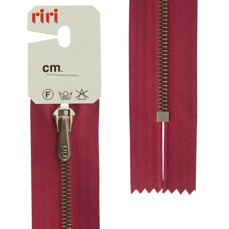 Молния Riri брючная, металл антик медь, неразъёмная, 4мм 18см, цвет 2411, бордовый