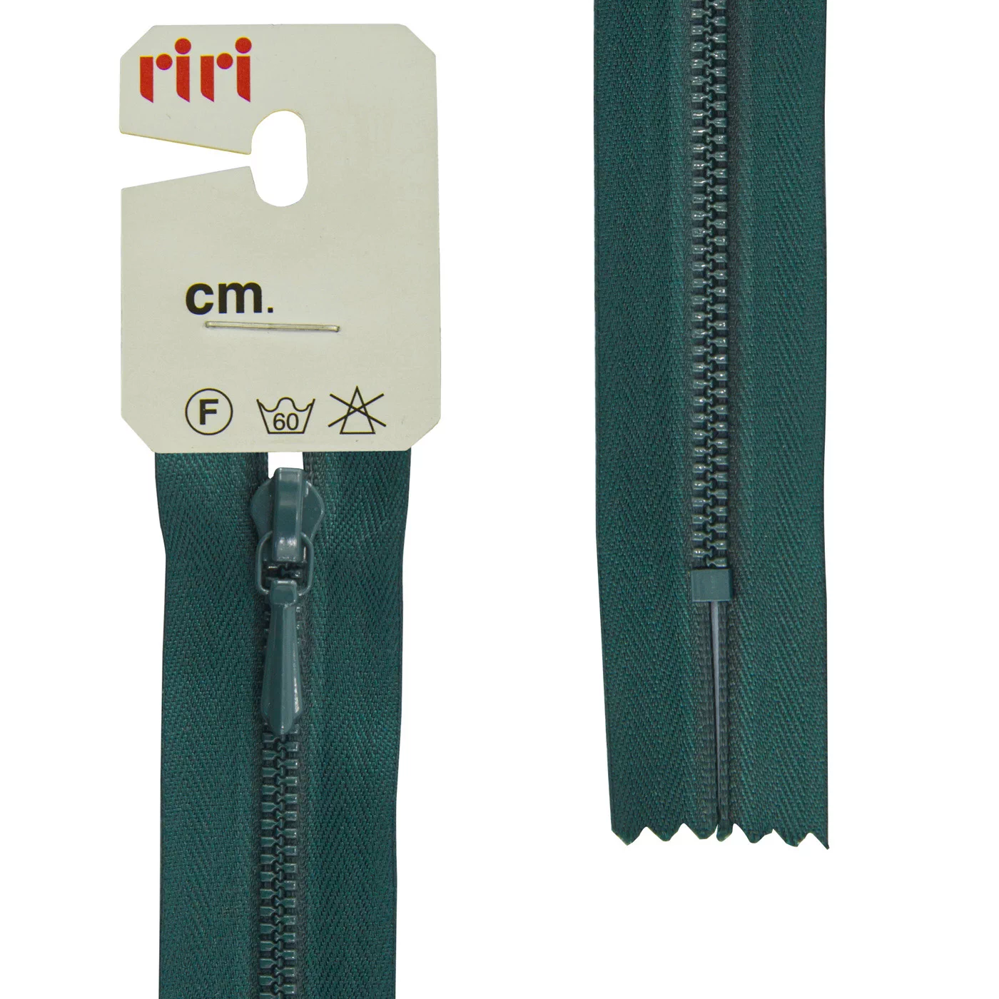 Функция слайдера - автофиксация. Отделка слайдера - тип Tropf, на обратной стороне выбит фирменный логотип «riri». Звено и бегунок окрашены в цвет тесьмы.