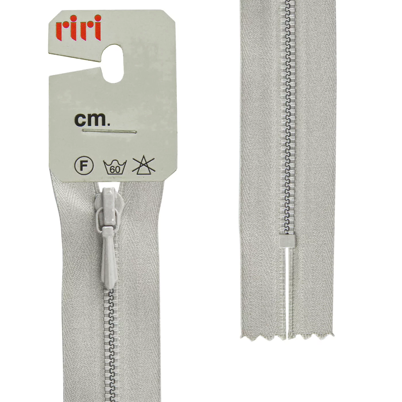 Функция слайдера - автофиксация. Отделка слайдера - тип Tropf, на обратной стороне выбит фирменный логотип «riri». Звено и бегунок окрашены в цвет тесьмы.