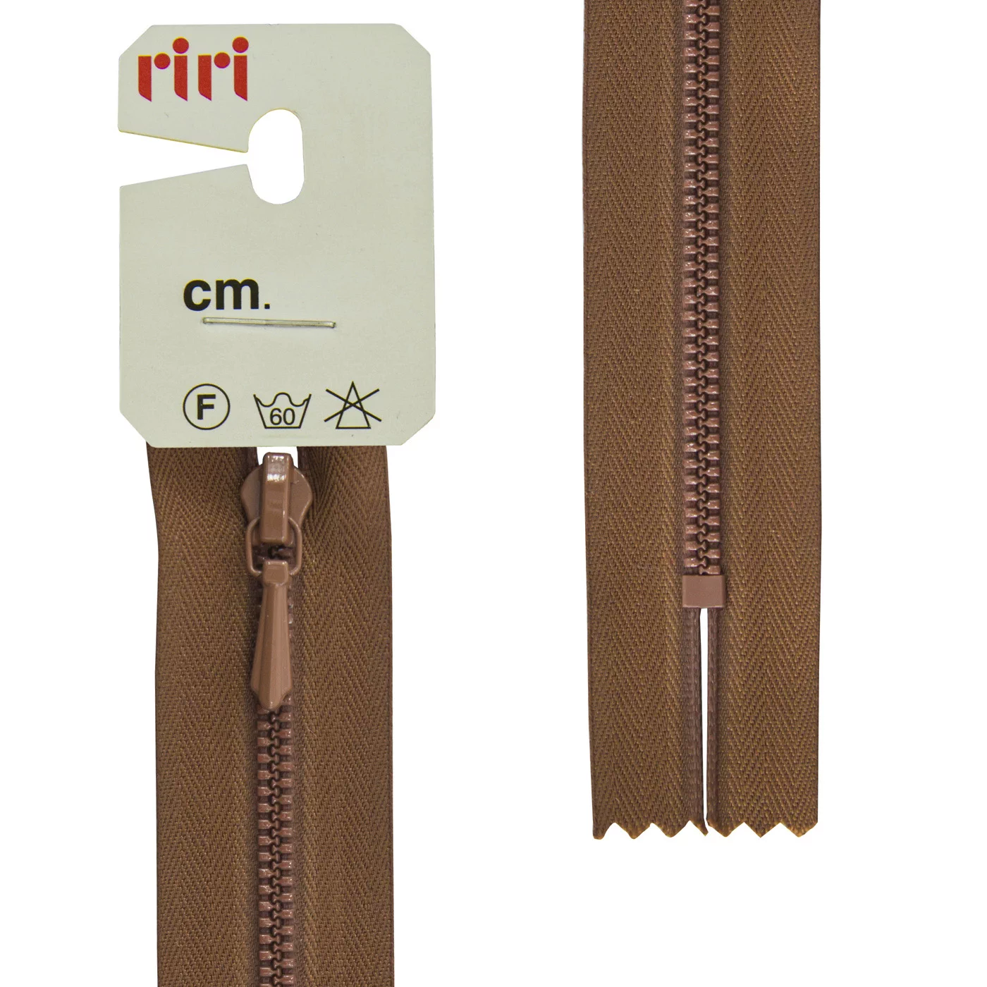 Функция слайдера - автофиксация. Отделка слайдера - тип Tropf, на обратной стороне выбит фирменный логотип «riri». Звено и бегунок окрашены в цвет тесьмы.