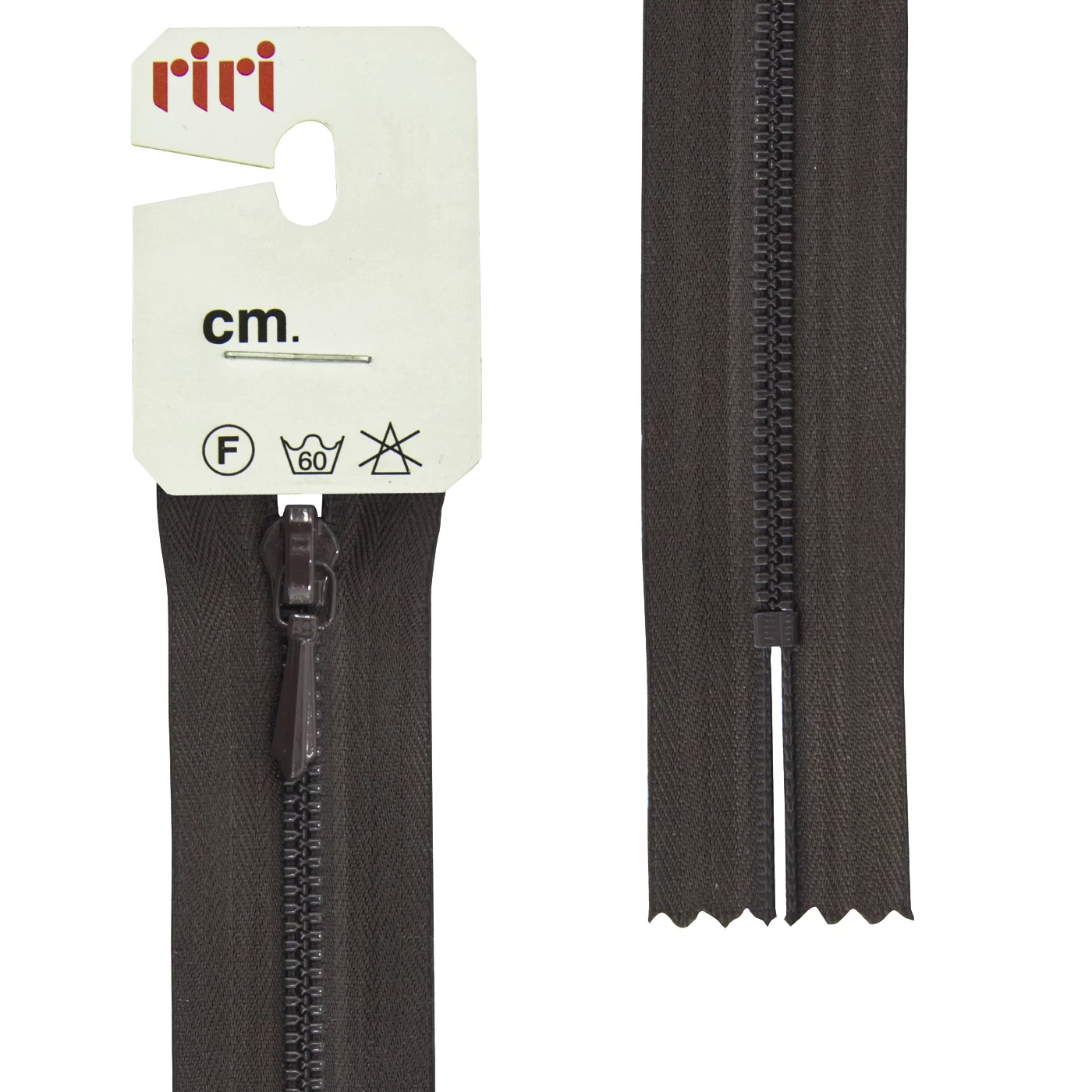 Функция слайдера - автофиксация. Отделка слайдера - тип Tropf, на обратной стороне выбит фирменный логотип «riri». Звено и бегунок окрашены в цвет тесьмы.