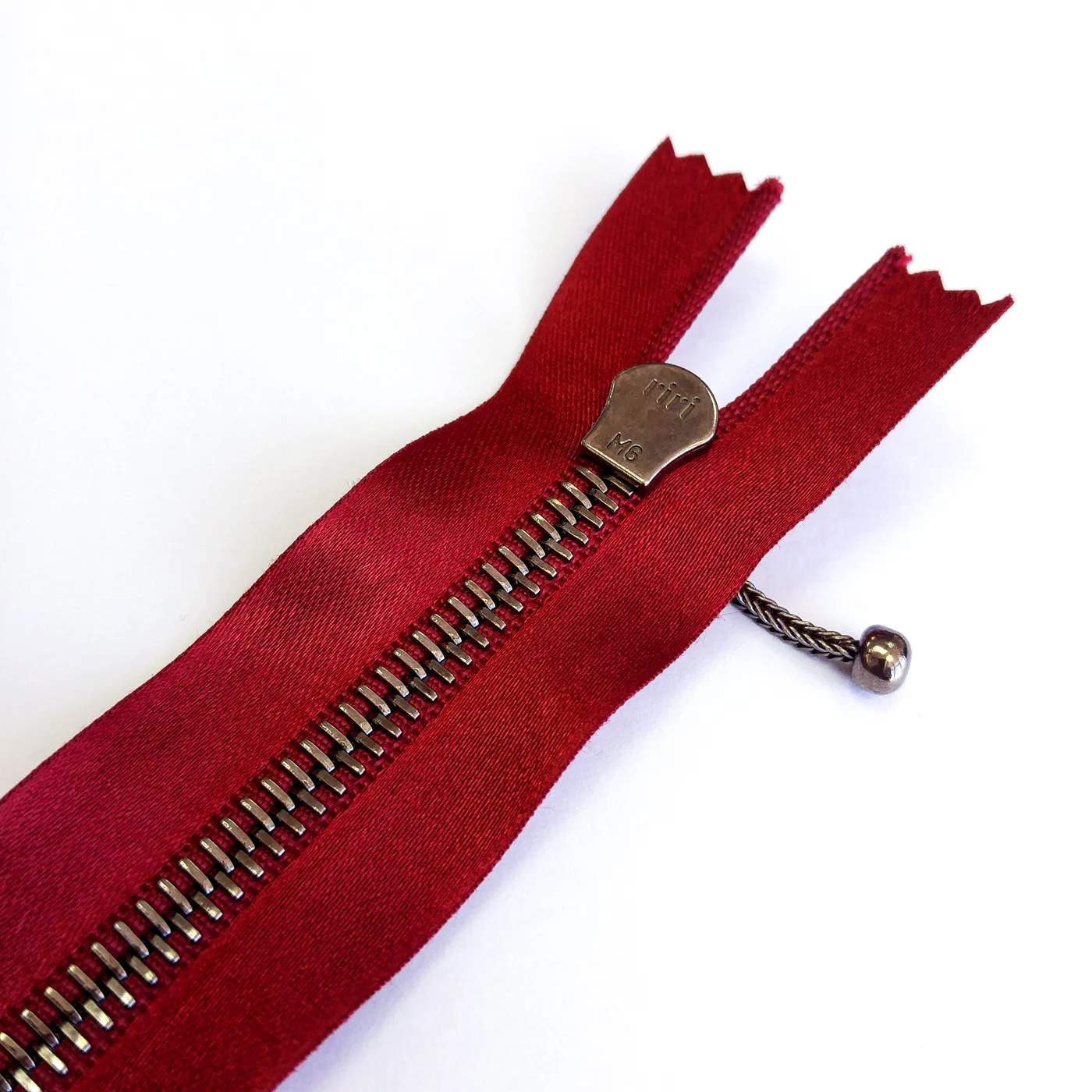 Бегунок RiRi представляет собой монотело, сопротивление разрыву замка и подвески на замке в 2 раза больше, чем на аналогичных изделиях других производителей! Процесс обработки зубцов для металлических молний RiRi гальванопокрытием предотвращают окисление зубцов. Гарантия на застежки RiRi практически пожизненная – 70 лет!