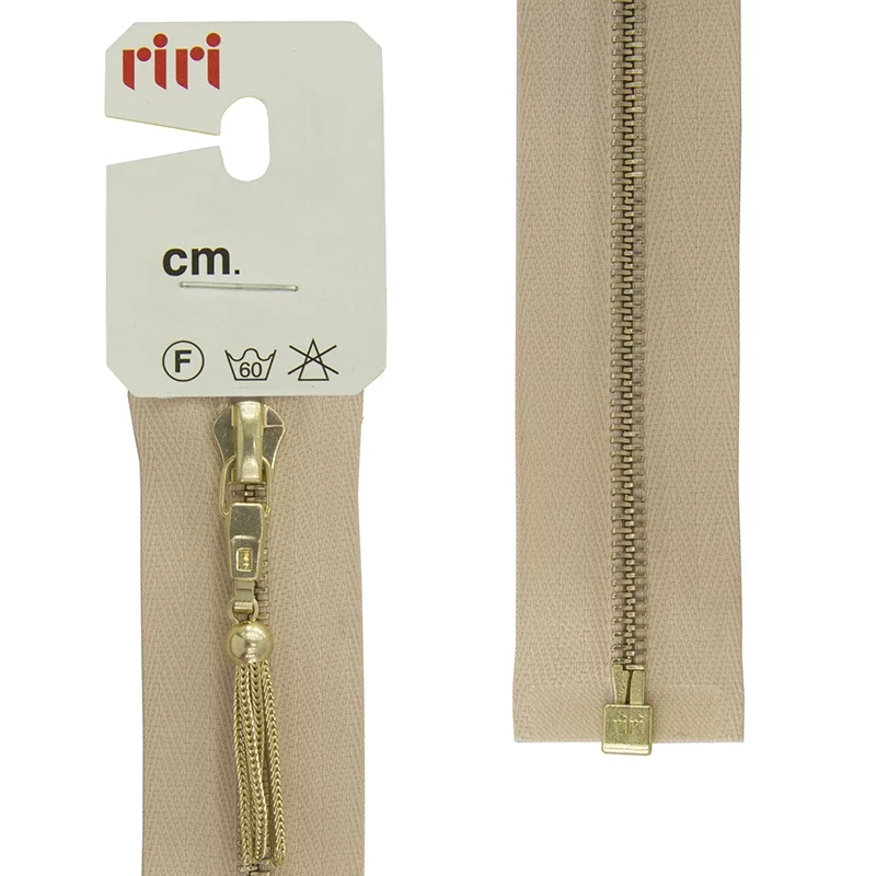Звено и бегунок имеют цвет золотистого покрытия, нанесённого гальваническим способом. Бегунок RiRi представляет собой монотело, сопротивление разрыву замка и подвески на замке в 2 раза больше, чем на аналогичных изделиях других производителей!
