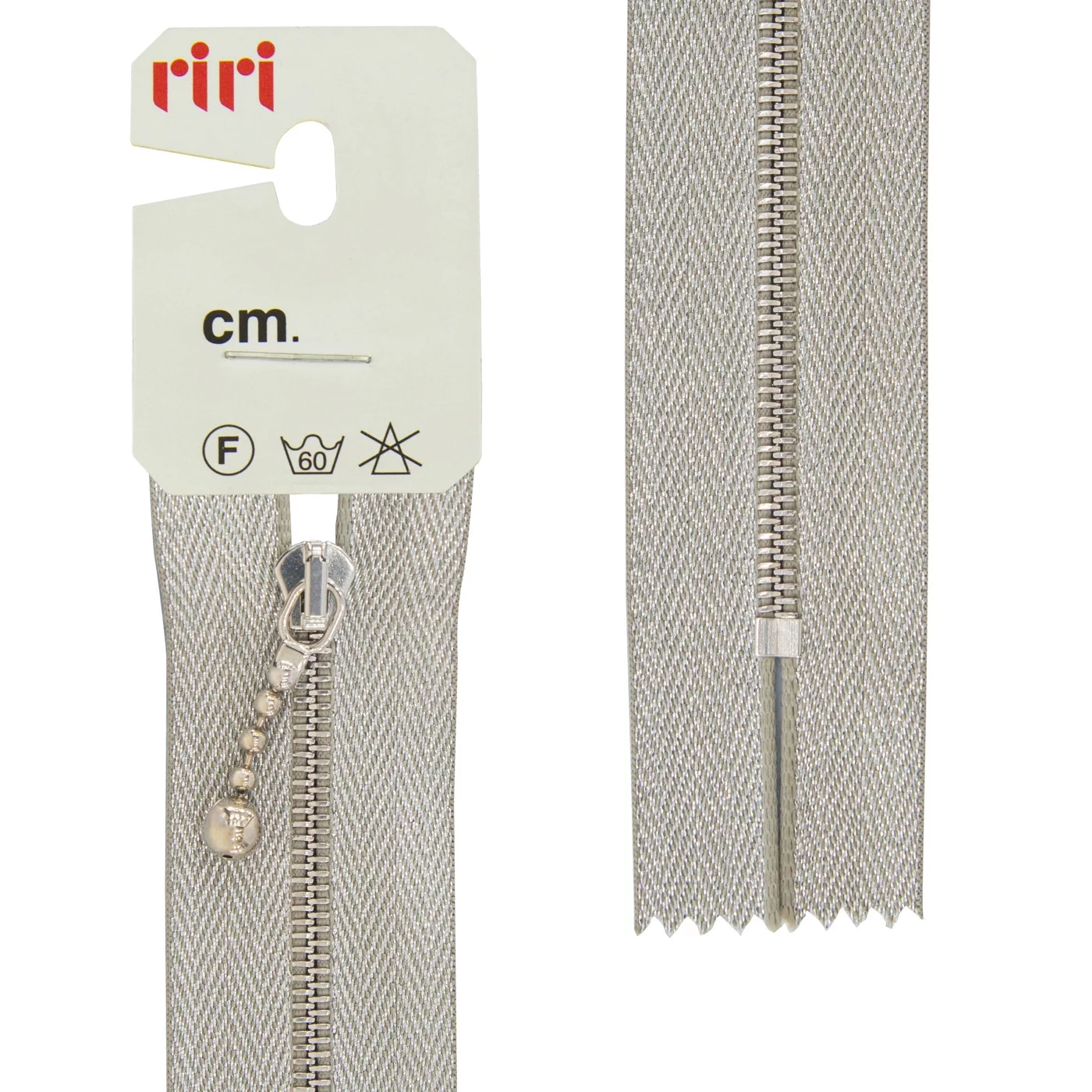 Звено и бегунок имеют цвет серебристого никелированного покрытия, нанесённого гальваническим способом. Тесьма содержит блестящую люрексовую нить. Бегунок riri представляет собой монотело, сопротивление разрыву замка и подвески на замке в 2 раза больше, чем на аналогичных изделиях других производителей!