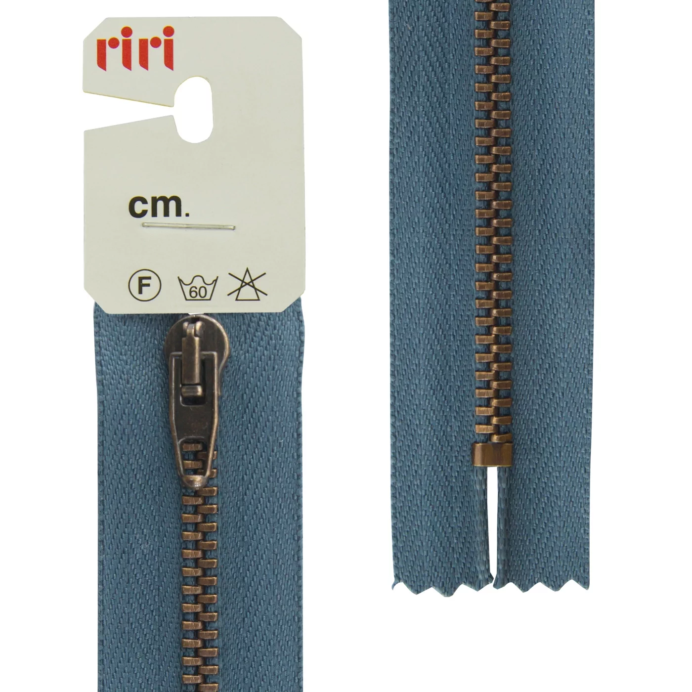 Молния RiRi металл неразъёмная, 4 мм 18 см, подвеска АТ, цепь антик медь, цвет 2122, серо-голубой