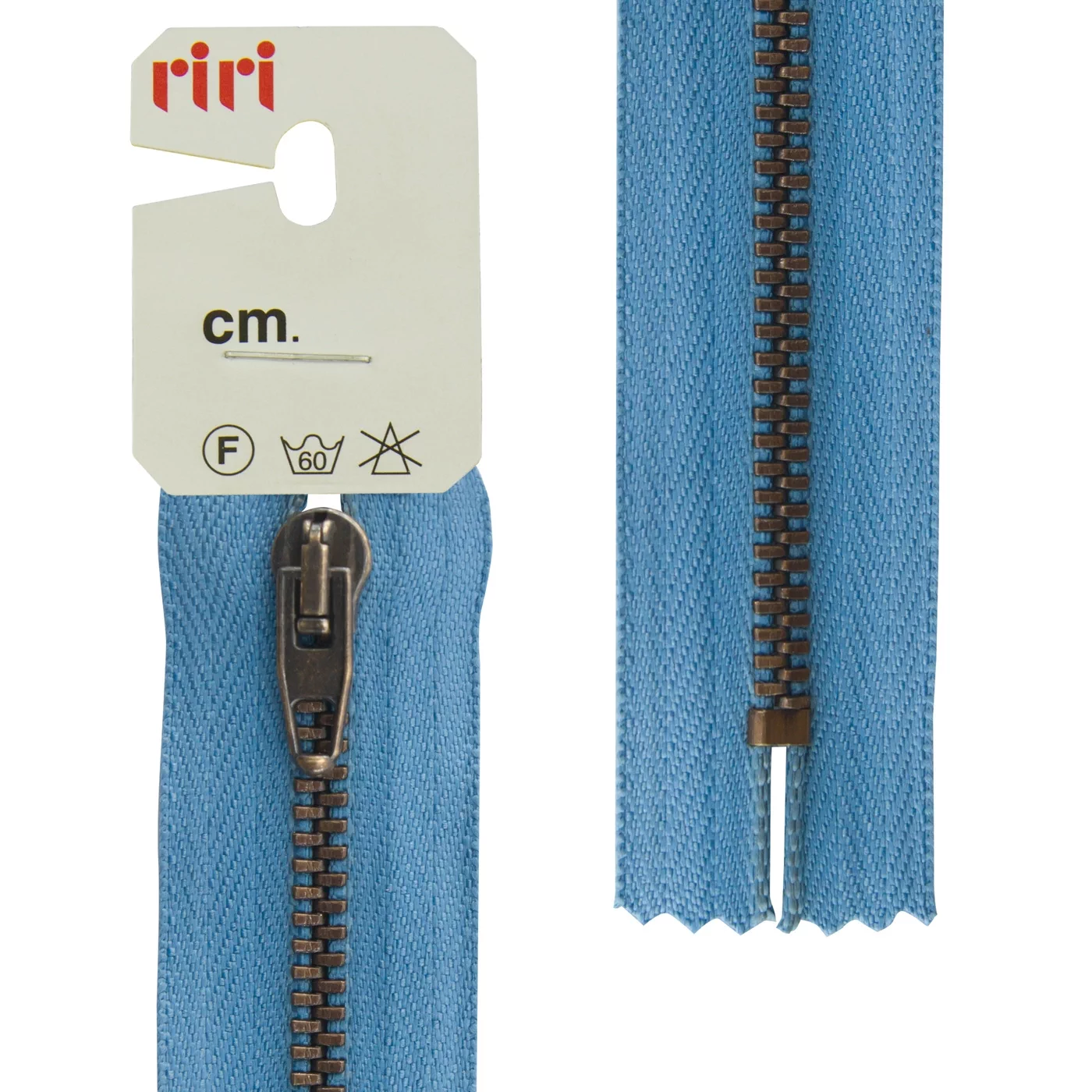 Молния RiRi металл неразъёмная, 4 мм 18 см, подвеска АТ, цепь антик медь, цвет 2630, сине-голубой