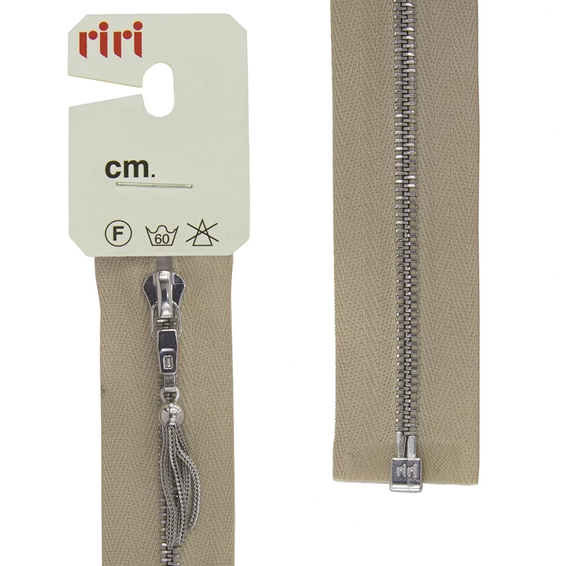 Молния RiRi металл, Ni, слайдер Zuff, 4 мм, разъёмная 1 замок, 60 см, цвет 2203, светло-бежевый