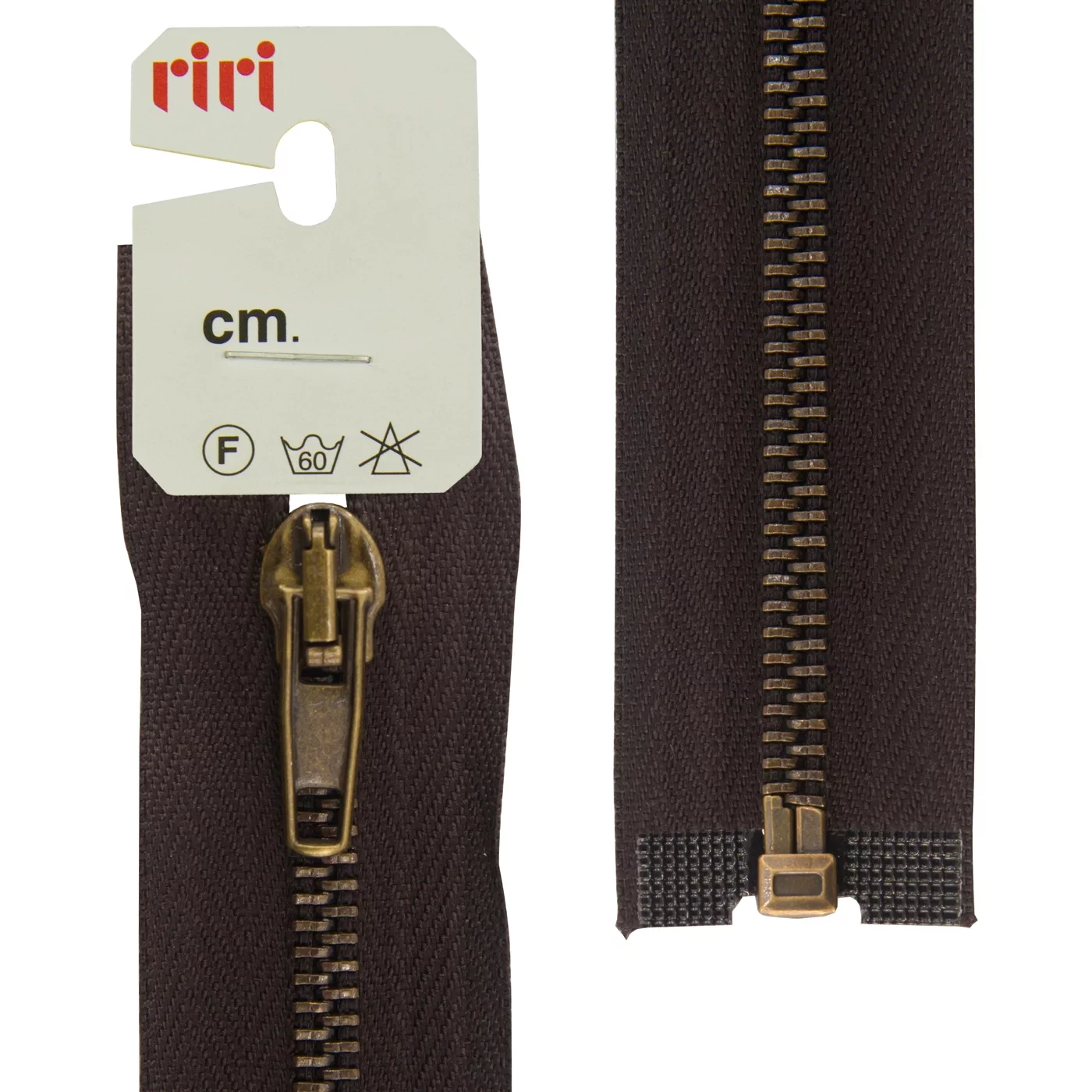 Молния RiRi металл разъём, 1 замок 5 мм 60 см, подвеска АТ, цепь антик медь, цвет 2226, т.коричневый