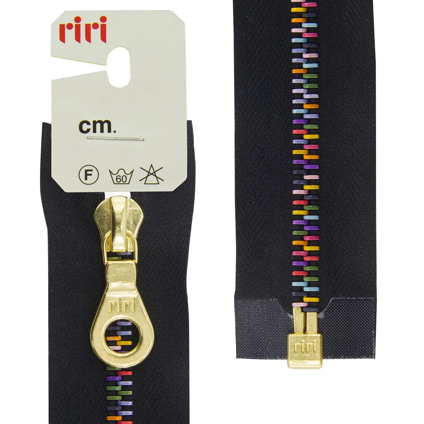 Звено и бегунок имеют цвет золотистого покрытия, нанесённого гальваническим способом. Бегунок riri представляет собой монотело, сопротивление разрыву замка и подвески на замке в 2 раза больше, чем на аналогичных изделиях других производителей!