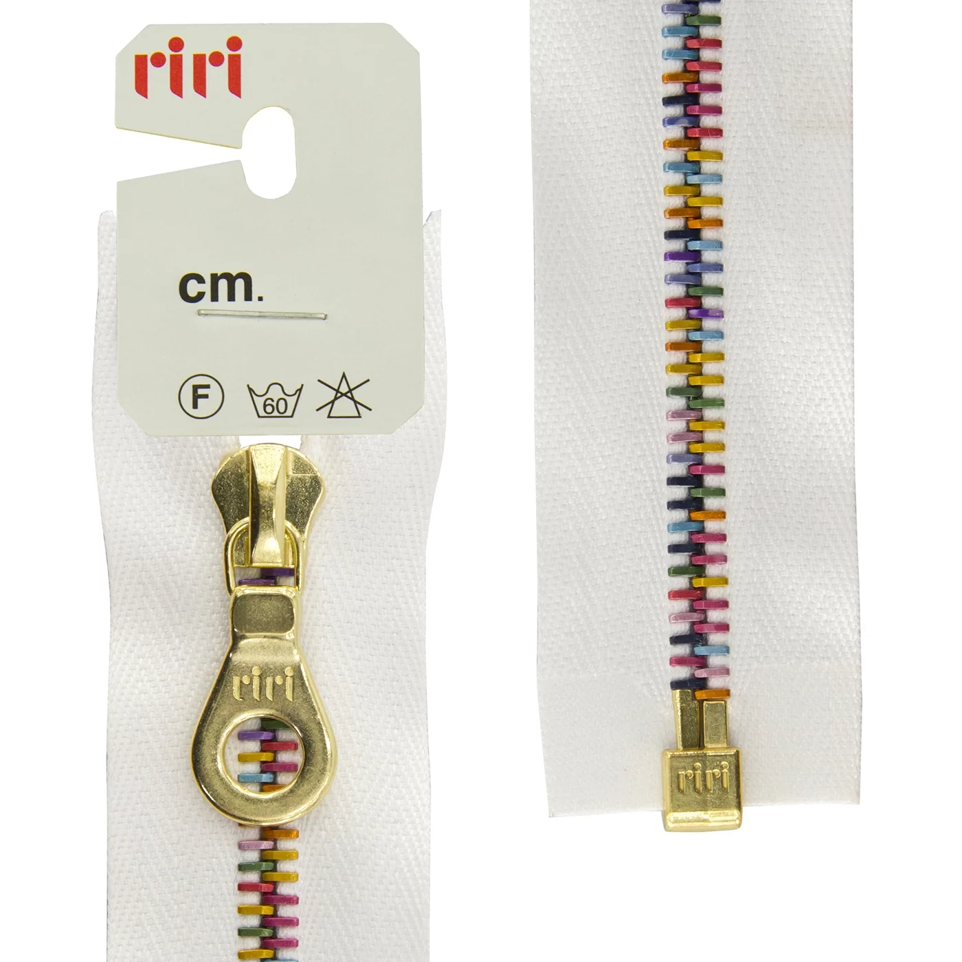 Функция слайдера - автофиксация. Отделка слайдера - тип Kta, на обратной стороне выбит фирменный логотип «riri». Звено тип RIO разноцветное.