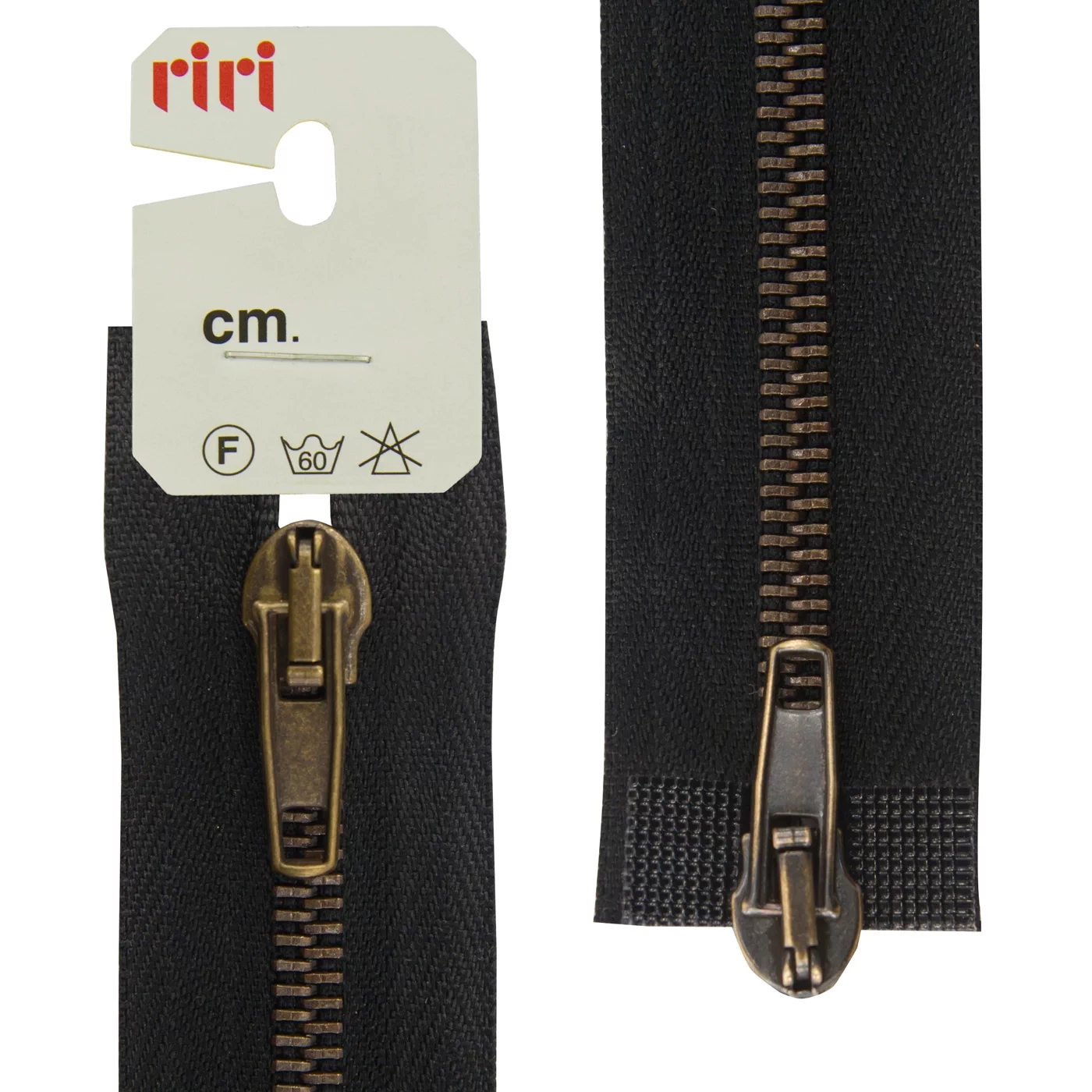 Молния RiRi металл разъем, 2 замка 5 мм 70 см, подвеска АТ, цепь антик медь, цвет 2110, черный