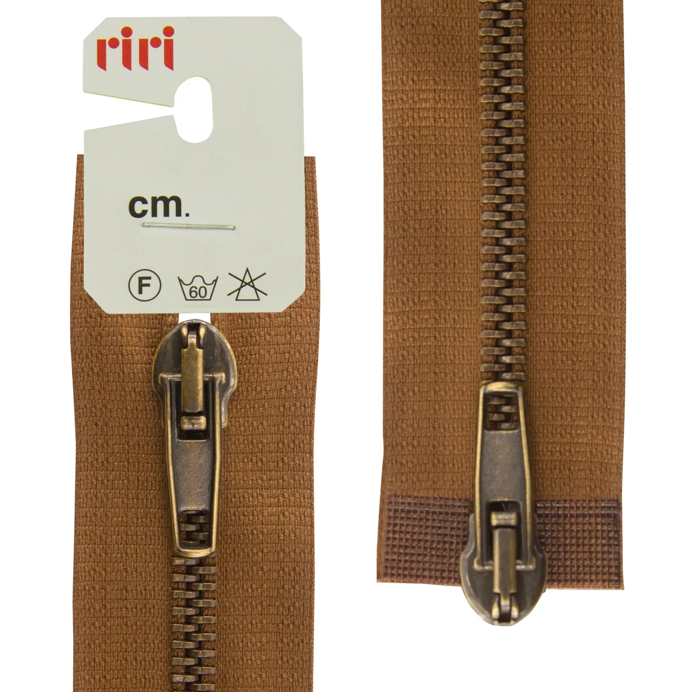 Молния RiRi металл разъём, 2 замка 5мм 80 см, подвеска АТ, цепь антик медь, цвет 2209, св.коричневый