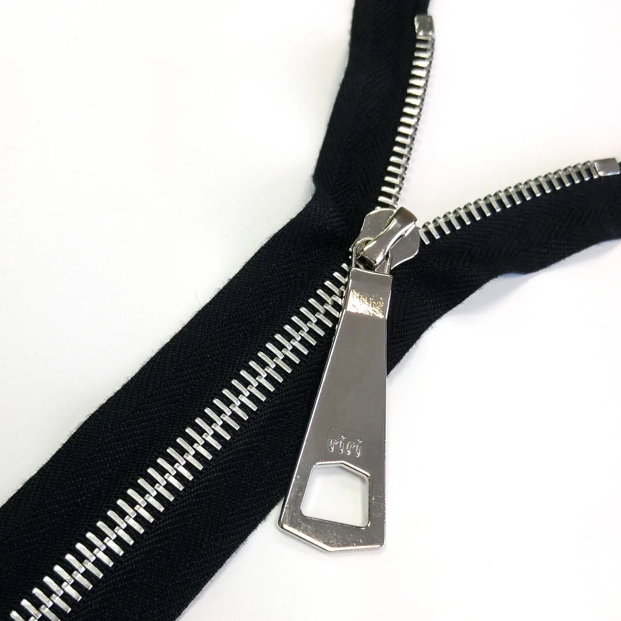 Бегунок RiRi представляет собой монотело, сопротивление разрыву замка и подвески на замке в 2 раза больше, чем на аналогичных изделиях других производителей! Процесс обработки зубцов для металлических молний RiRi гальванопокрытием предотвращают окисление зубцов. Гарантия на застежки RiRi практически пожизненная – 70 лет!