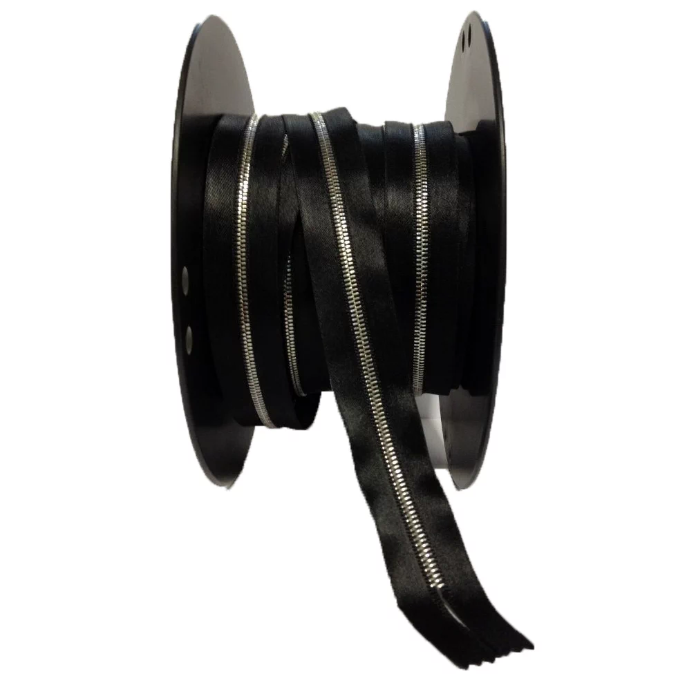 Черная атласная молния RIRI в рулоне – отличный вариант для дизайнеров, производств, ателье по пошиву и ремонту одежды, обуви и сумок. Из рулонной молнии можно изготовить неразъемную молнию любой длины, поэтому она пользуется популярностью при пошиве всевозможных сумок, чехлов, обуви и другой кожгалантереи. Всегда очень сложно найти подходящую молнию на изделие, если оно не стандартных размеров.