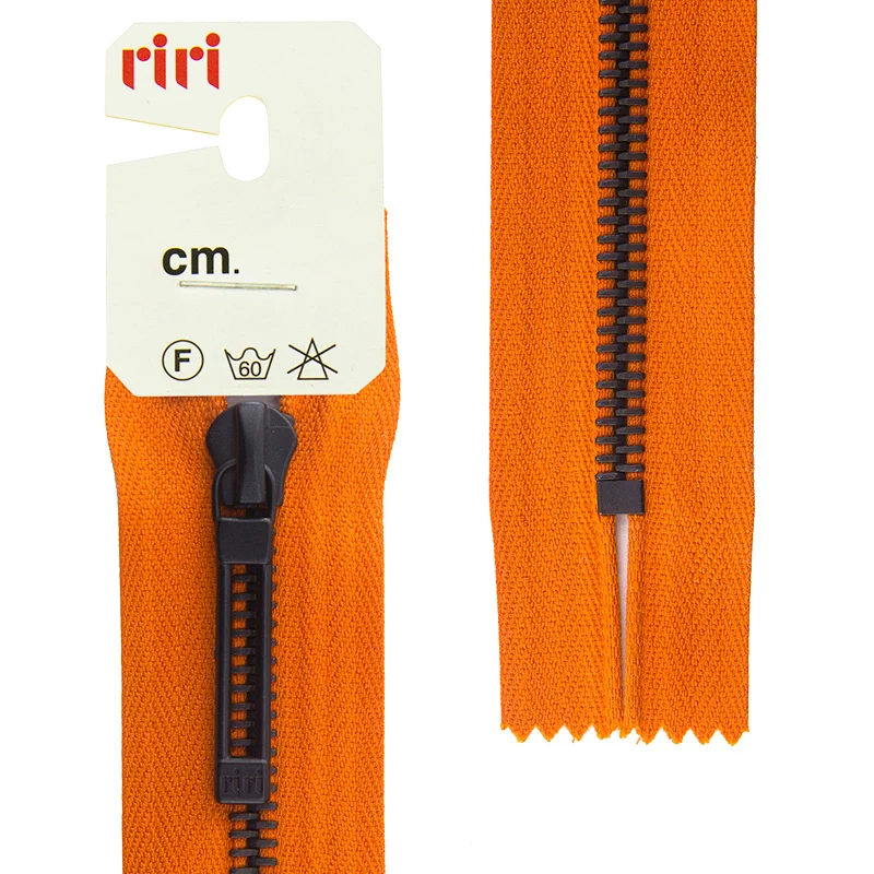 Молния RiRi "Топ" металл неразъёмная, 6мм 18см, подвеска STAB, цепь Bl, цвет 2404, оранжевый