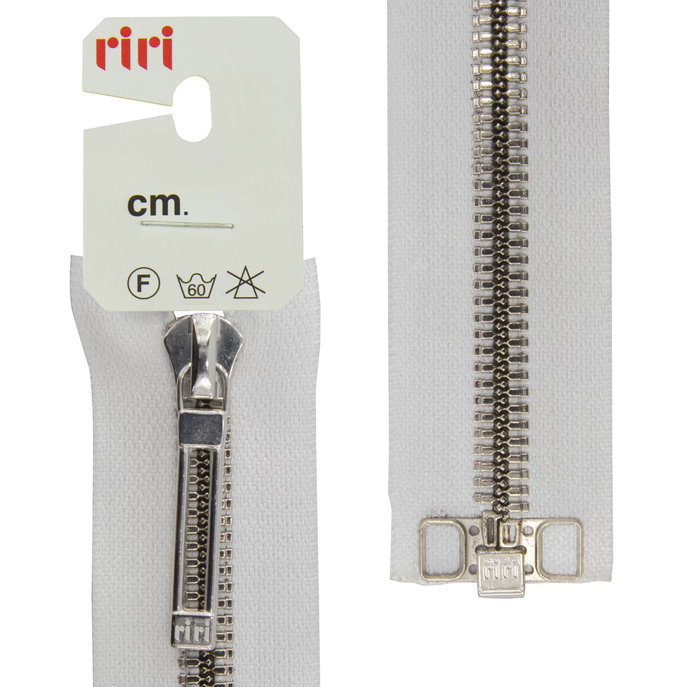 Молния RiRi "Топ" металл разъёмная, 1 замок 6мм 80см, подвеска STAB, цепь Ni, цвет 2101, белый