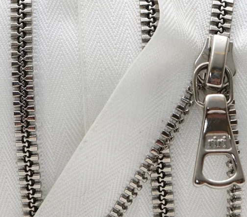 Молния металл 3 мм литьё, тесьма полиэстер белого цвета, цвет металла никель, однозамковая разъемная 65 см.