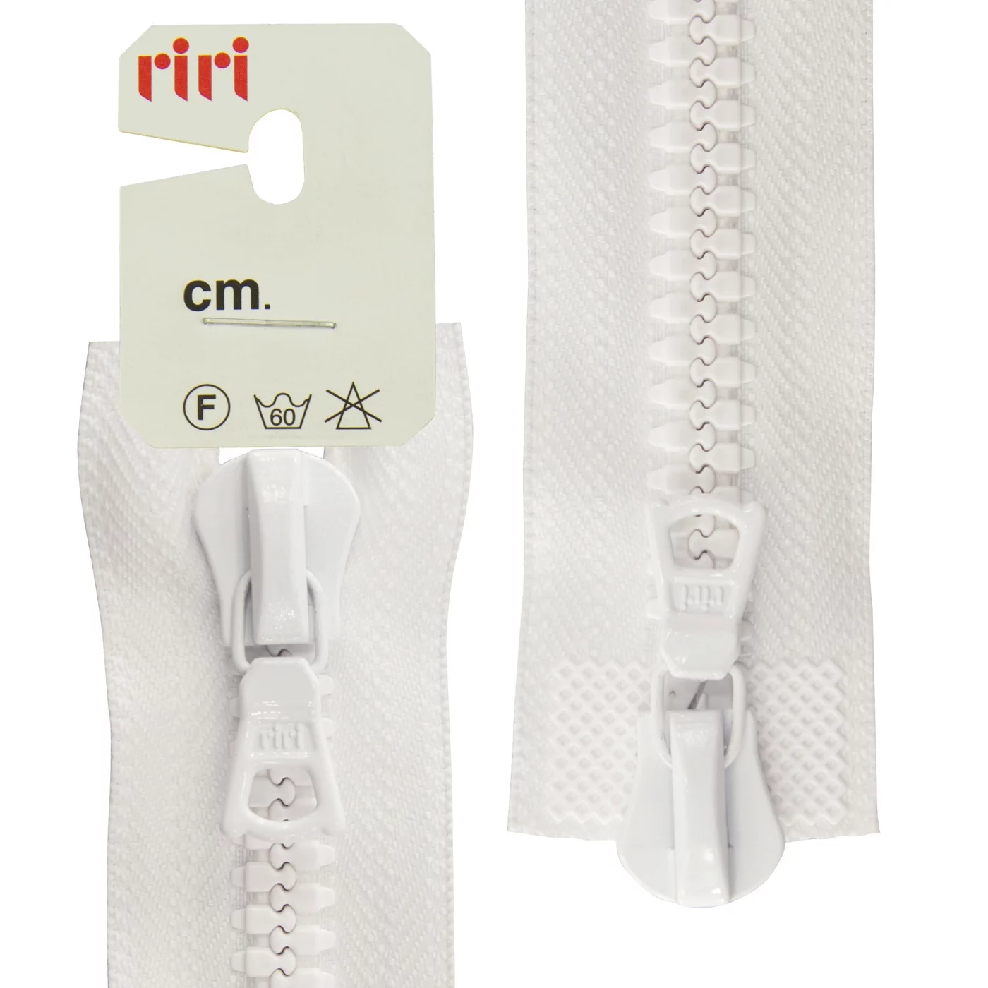 Молния Riri трактор разъёмная, 2 замка, 8мм, 70см, цвет 2101, белый