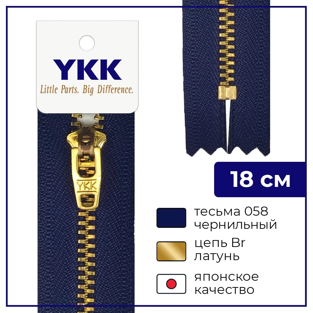 Молния YKK металл неразъёмная, 1 замок 18см тип 3, цепь латунь, цвет 058, чернильный