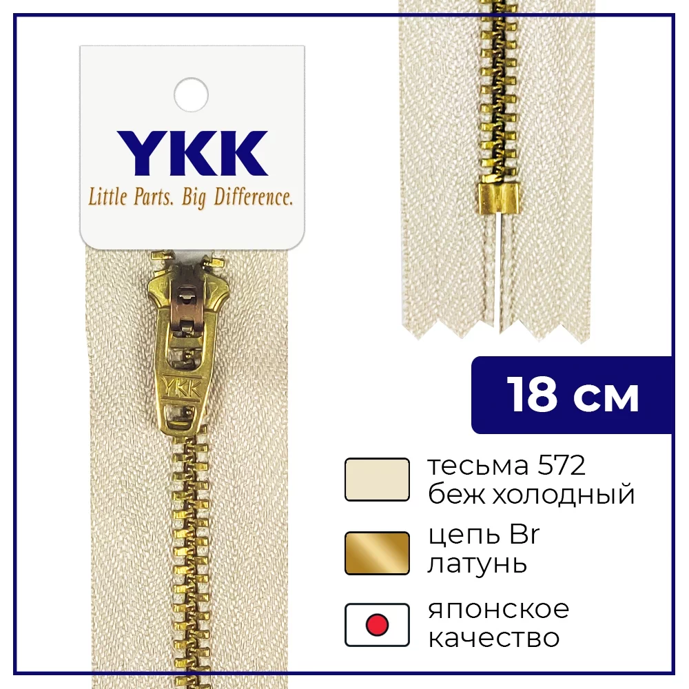 Звено и бегунок имеют цвет покрытия - латунь. Сфера применения застежки: юбки и брюки, одежда из джинсовой ткани, декоративные карманы, разнообразные сумки и домашний текстиль.