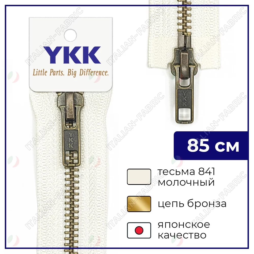 Молния YKK металл разъёмная, 2 замка 85см тип 5, цепь темная латунь, цвет 841, молочный