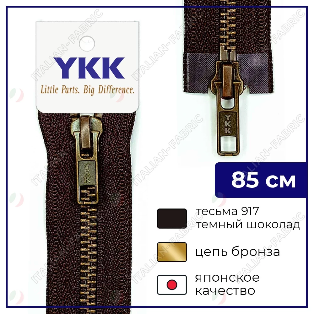 Молния YKK металл разъёмная, 2 замка 85см тип 5, цепь темная латунь, цвет 917, темный шоколад
