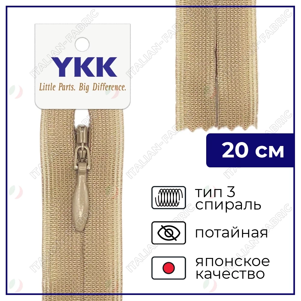 Молния YKK потайная неразъёмная, 20см, 3мм, цвет 007, темно-бежевый