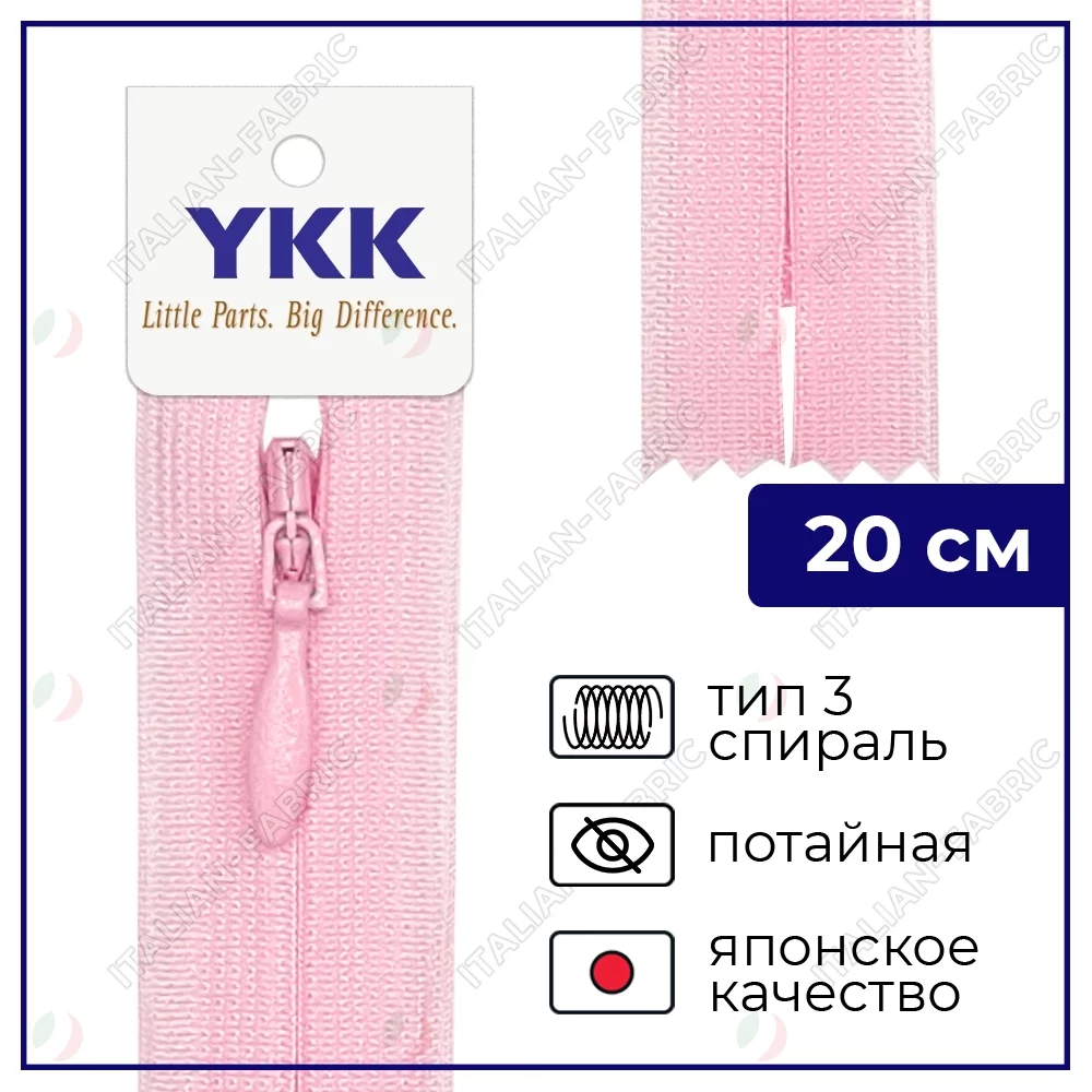 Молния YKK потайная неразъёмная, 20см, 3мм, цвет 513, розовый
