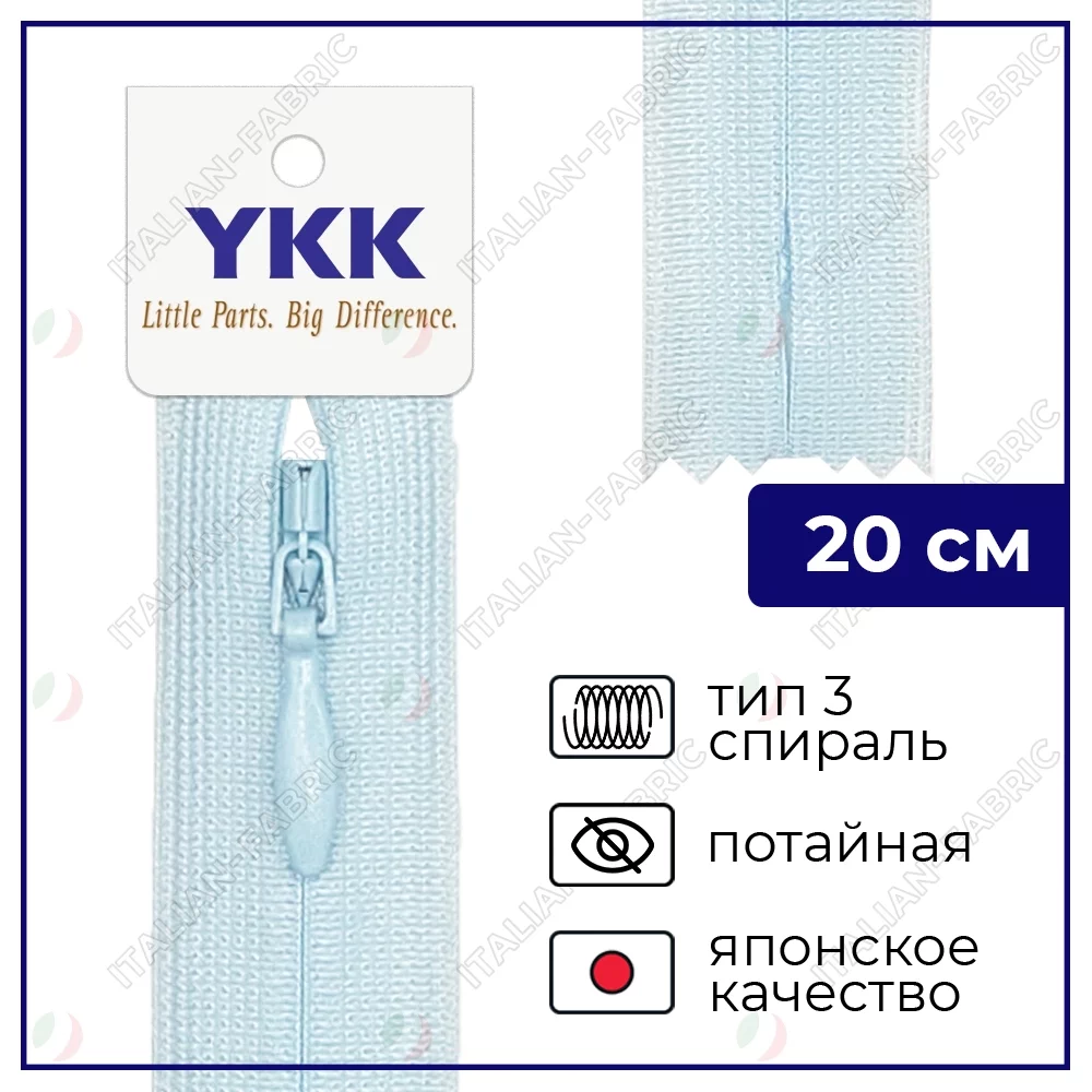 Молния YKK потайная неразъёмная, 20см, 3мм, цвет 542, светло-голубой