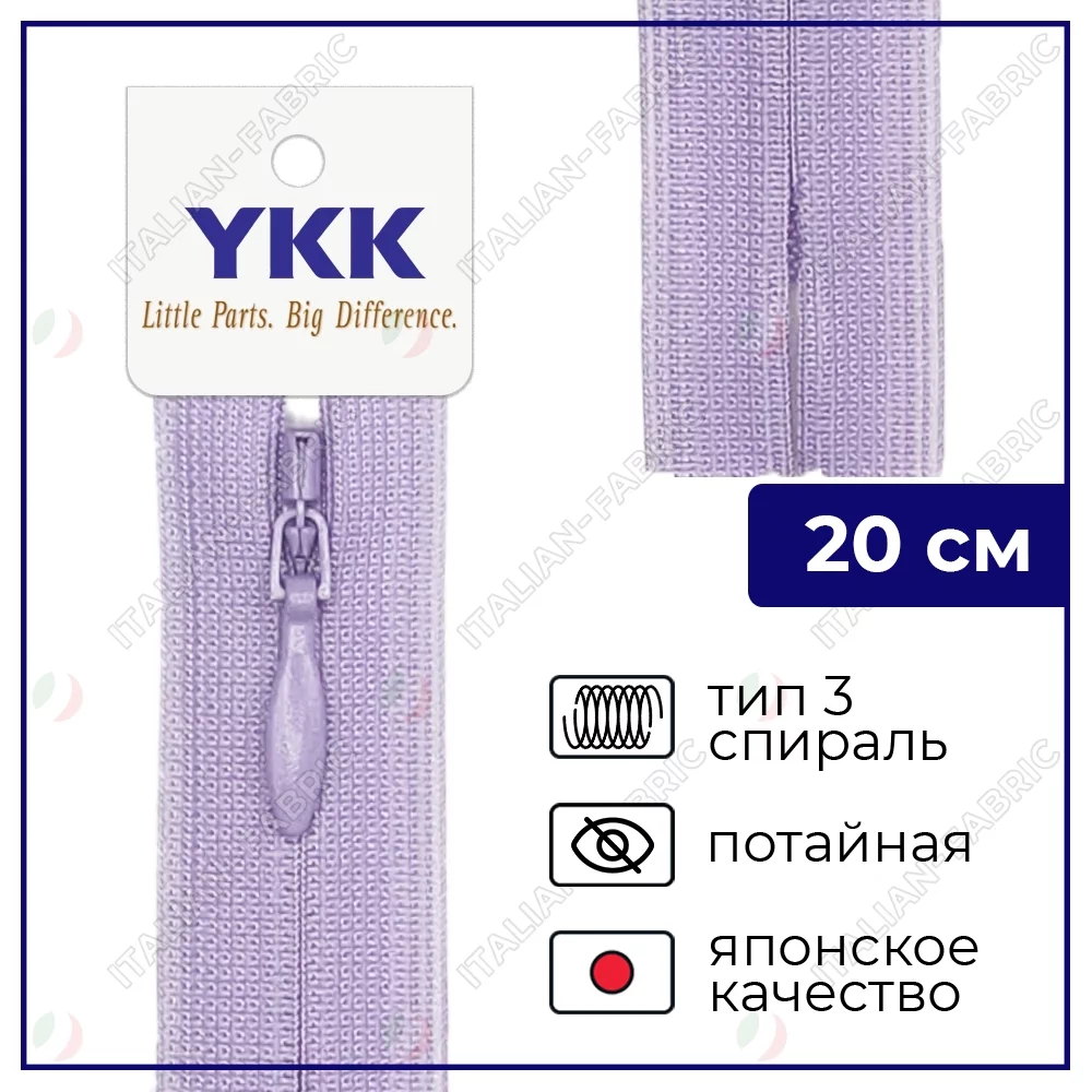 Молния YKK потайная неразъёмная, 20см, 3мм, цвет 553, аметистовый