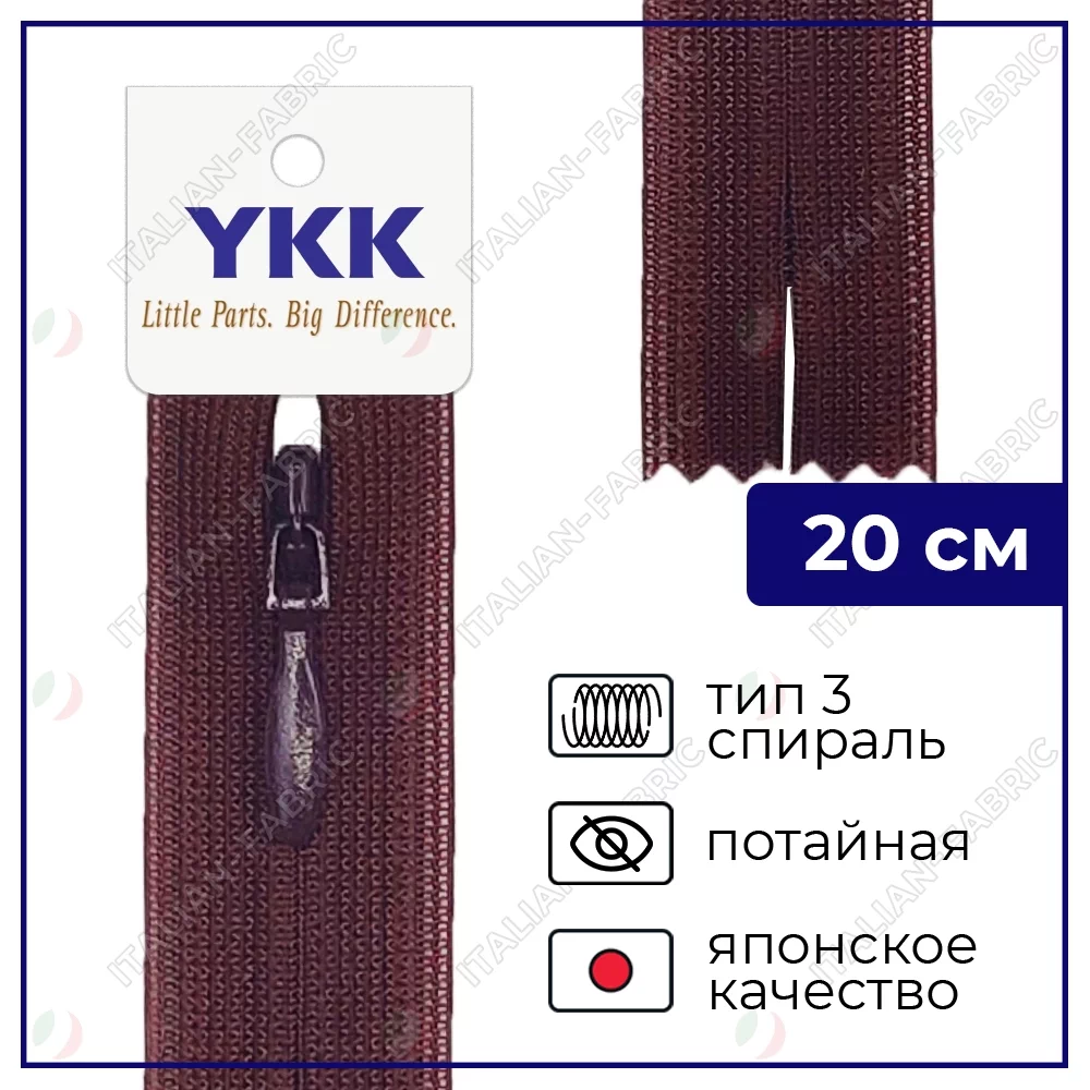 Молния YKK потайная неразъёмная, 20см, 3мм, цвет 864, коричнево-свекольный