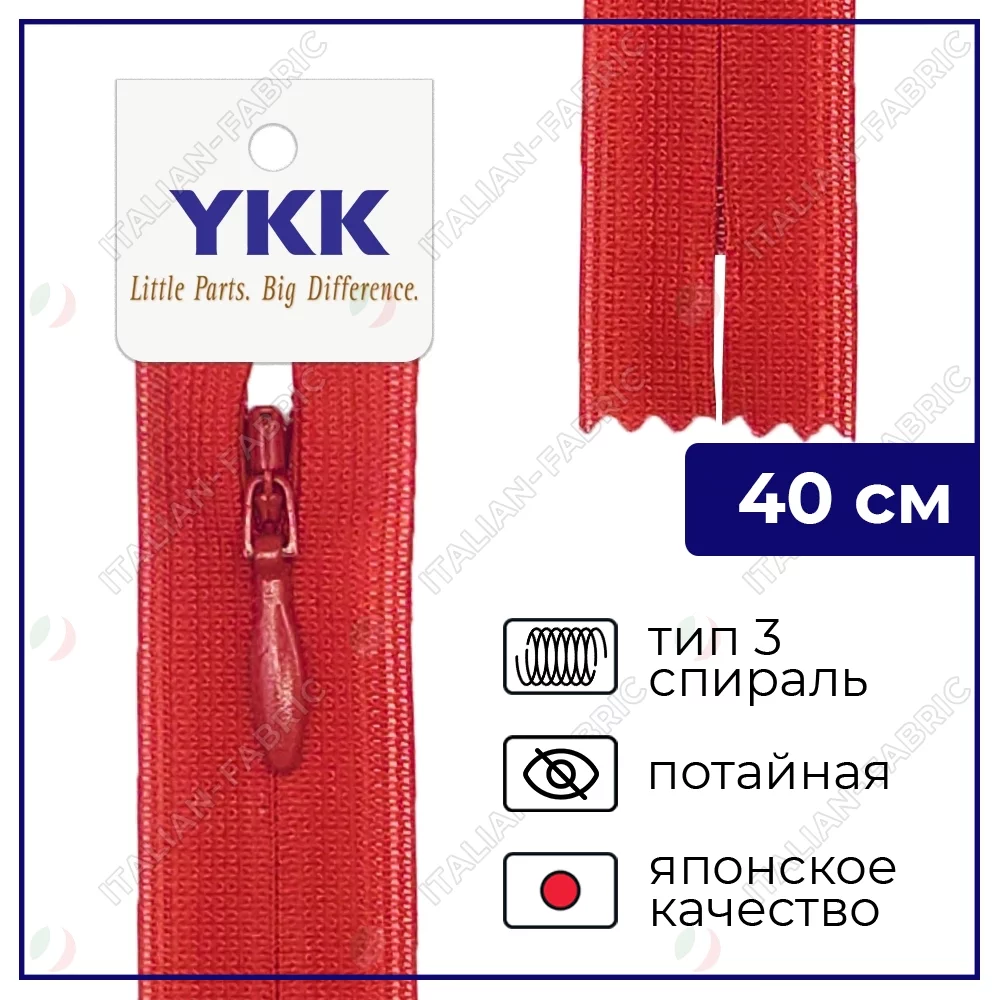 Молния YKK потайная неразъёмная, 40см, 3мм, цвет 519, красный