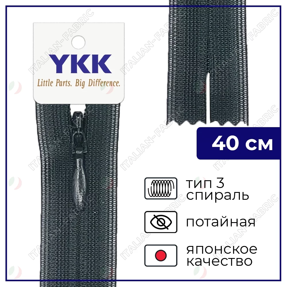 Молния YKK потайная неразъёмная, 40см, 3мм, цвет 156, мокрый асфальт