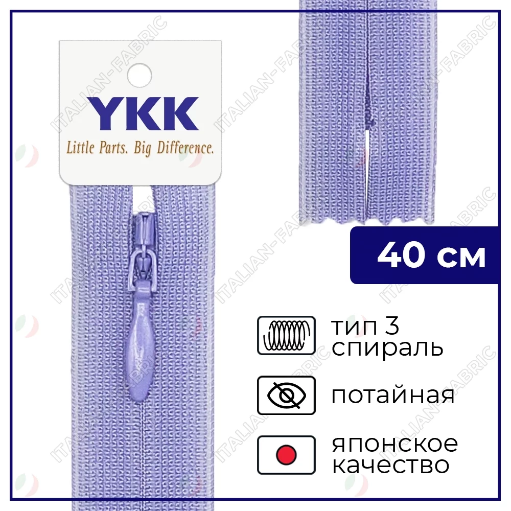 Молния YKK потайная неразъёмная, 40см, 3мм, цвет 554, темно-сиреневый