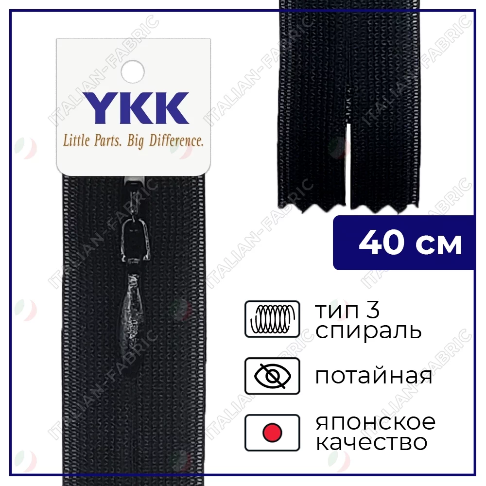 Молния YKK потайная неразъёмная, 40см, 3мм, цвет 580, черный