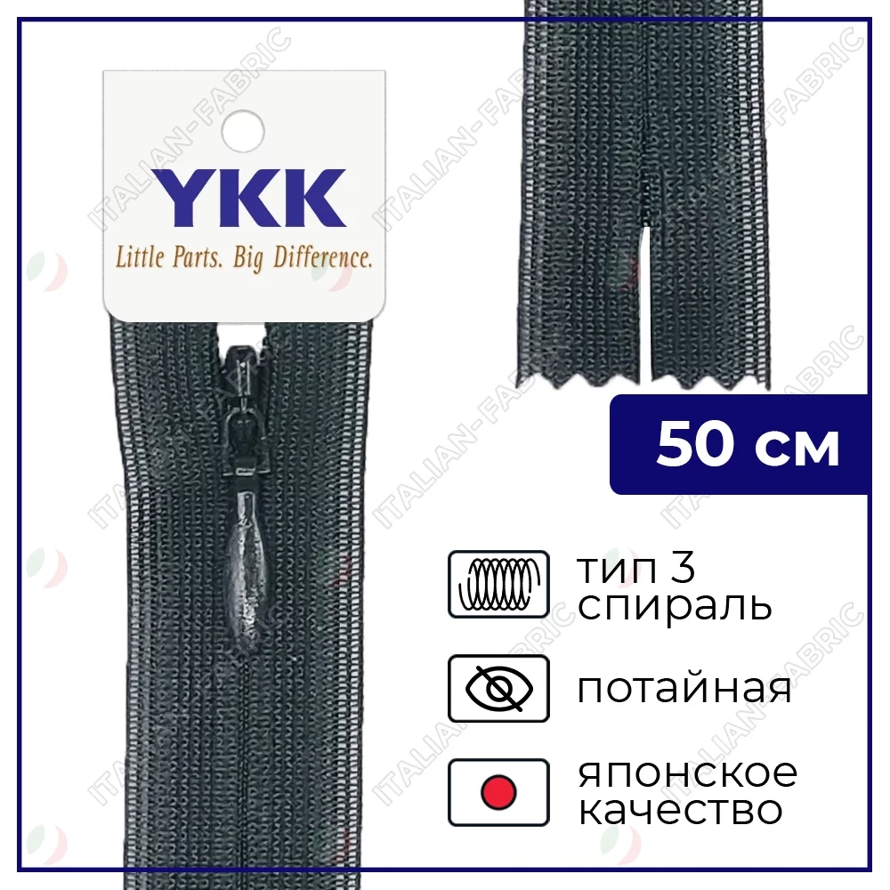Молния YKK потайная неразъёмная, 50см, 3мм, цвет 156, мокрый асфальт